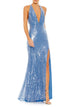 Vestido de festa Mac Duggal com decote halter e lantejoulas em azul-celeste, tamanho 4