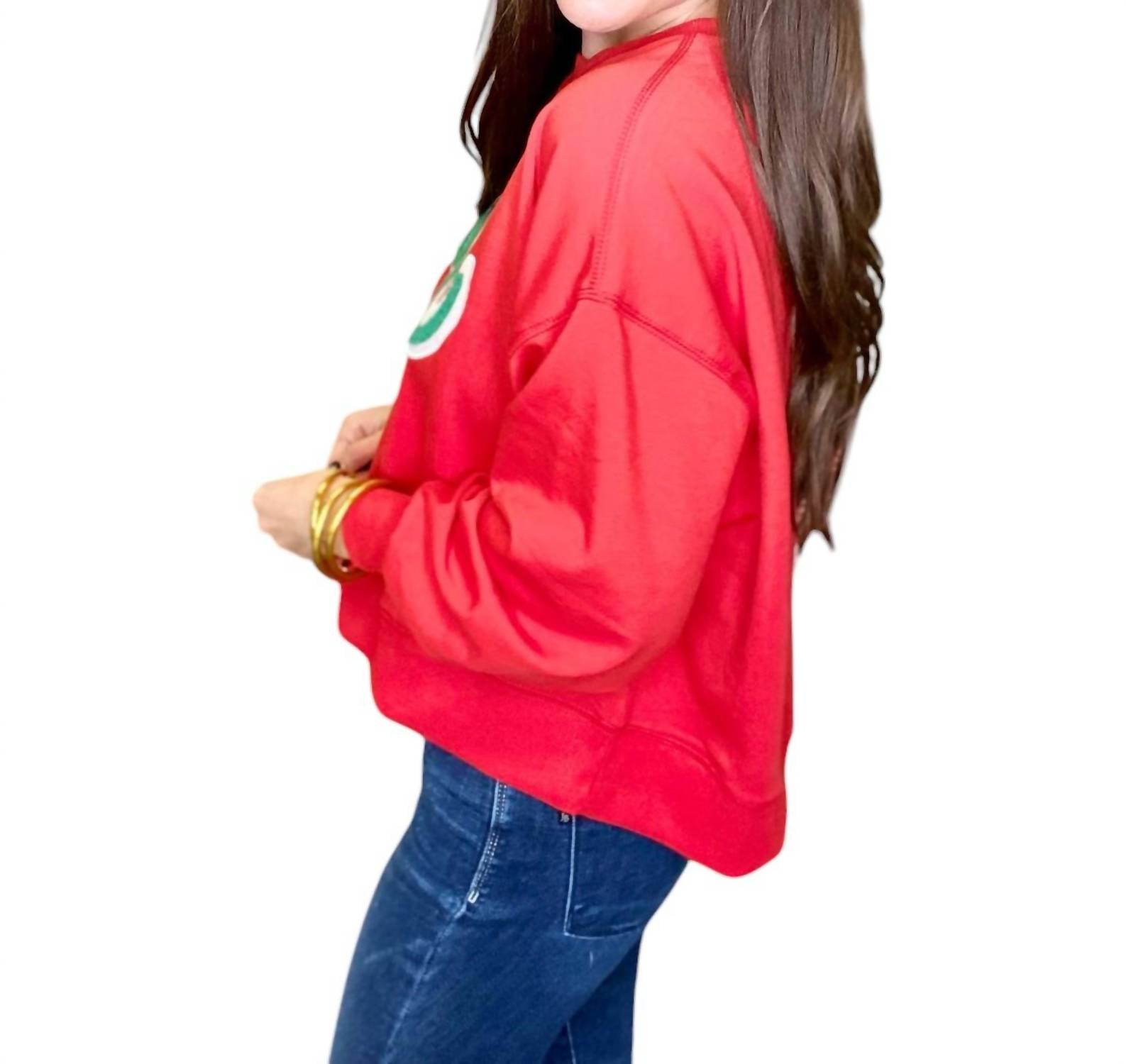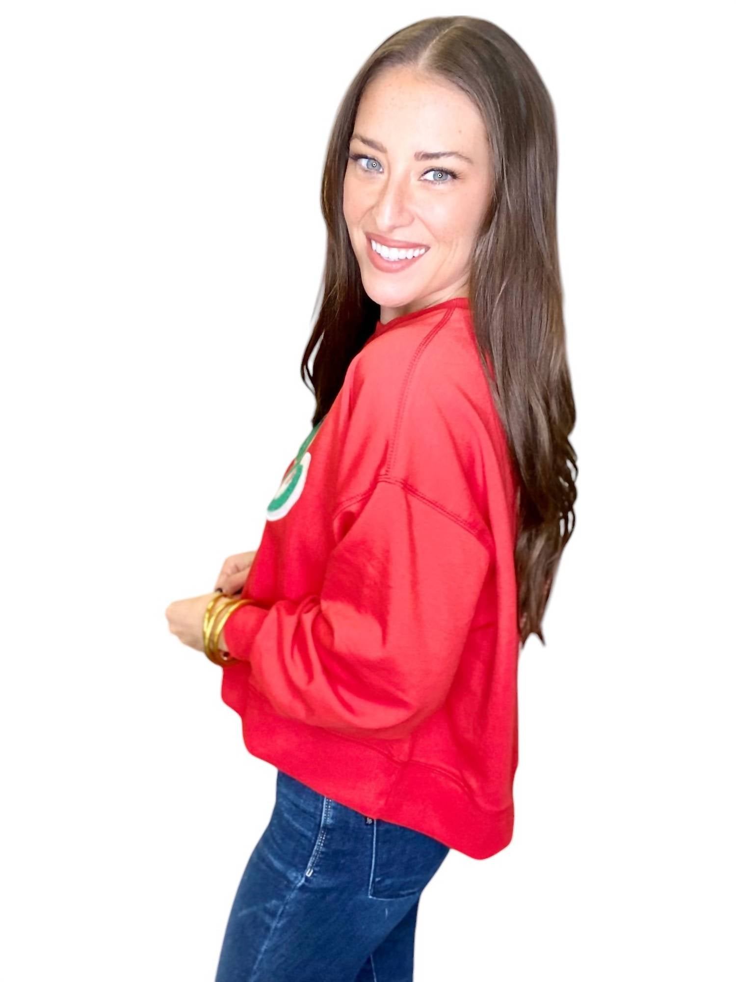 O Moletom Merry da Mary Square é uma peça vermelha vibrante e festiva, confeccionada em poliéster premium. Com bordado bouclé e aplique de glitter com a palavra "Merry", possui mangas longas e volumosas e comprimento levemente cropped para uma elegância divertida. O fecho pull-on e a gola redonda clássica o tornam perfeito para confraternizações aconchegantes de fim de ano e festividades de inverno.