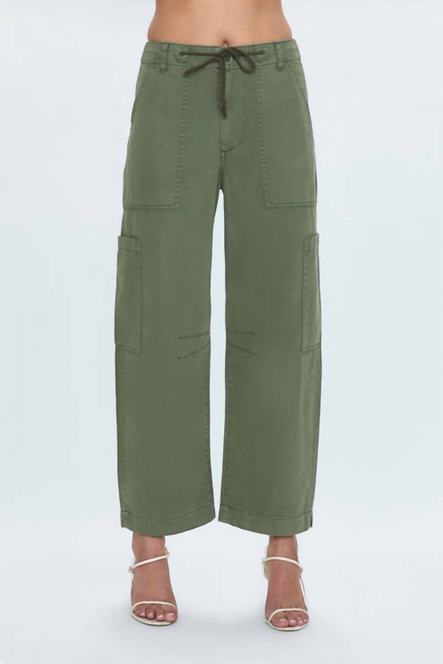 Atualize seu guarda-roupa com estas calças cropped, projetadas para unir sofisticação e praticidade. O corte sob medida garante o máximo conforto durante longos dias ou saídas à noite. Apresentamos a Calça Utilitária Curva Sabrina da PISTOLA em um vibrante verde Meadow, personificando a utilidade com um toque feminino. Desenhada com um caimento relaxado e uma perna larga curvada que valoriza o corpo, esta calça apresenta um cós confortável de 28 cm e uma costura interna curta de 68 cm, perfeita para destacar um pouco o tornozelo. Confeccionada em 100% algodão, a peça é confeccionada em sarja que não estica, mantendo a estrutura. Fechamento: Botão. Instruções de cuidado: Lavar à máquina com água fria. O padrão texturizado e os bolsos utilitários funcionais aprimoram o estilo e a funcionalidade.