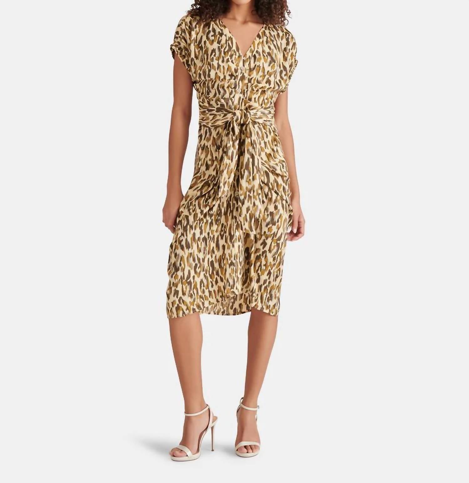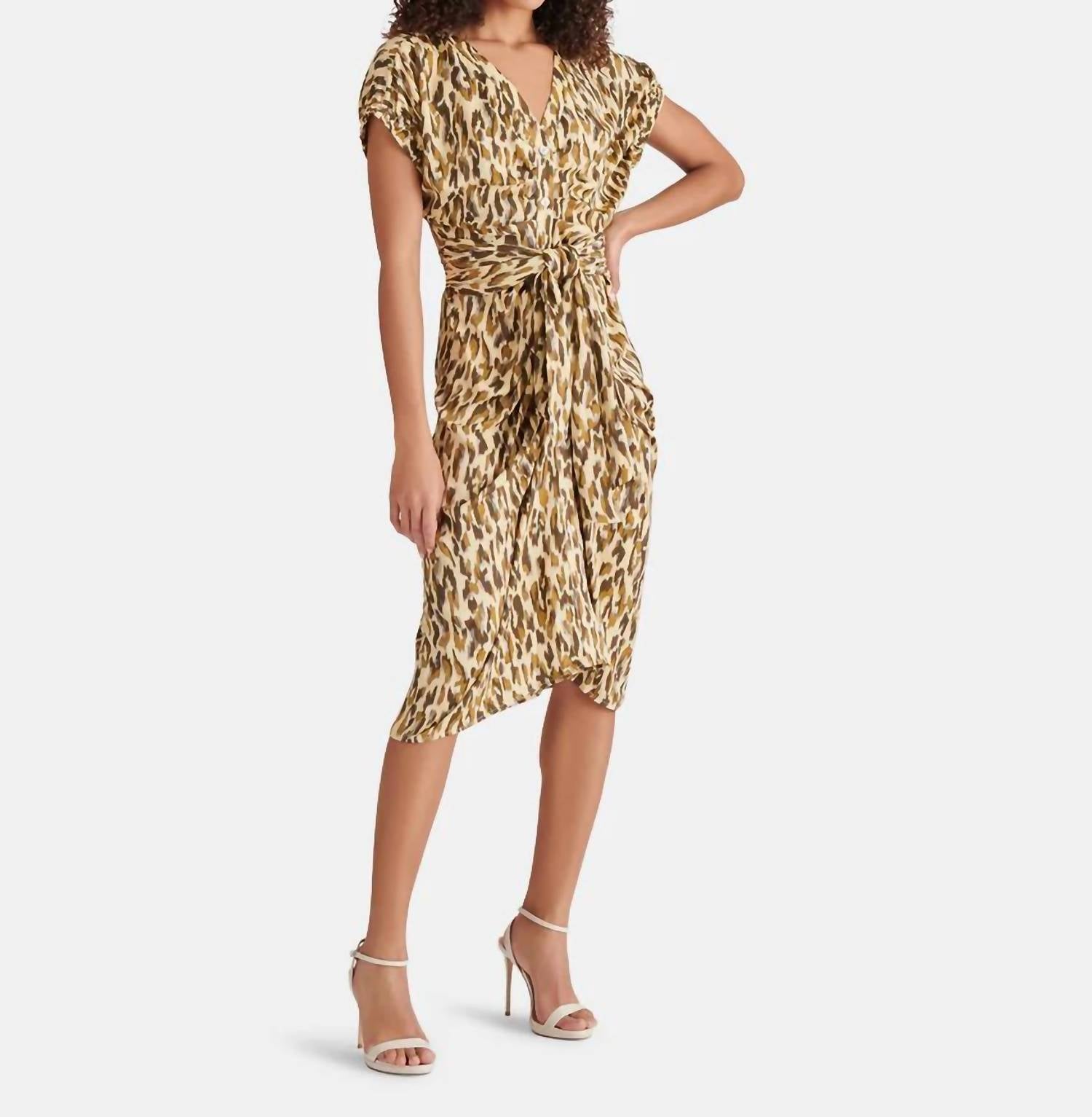 Basta adicionar slides ou mules e pronto. O vestido BRUNO é uma adição versátil e estilosa a qualquer guarda-roupa. Este vestido midi de manga curta possui um prático fecho de botões e um elegante cós com amarração frontal, tornando-o a escolha perfeita para qualquer ocasião. Seu design elegante e caimento confortável certamente farão você se destacar em qualquer ocasião. Vestido midi com estampa de leopardo e amarração frontal Manga curta Fecho de botão 100% poliéster Lavagem à mão
