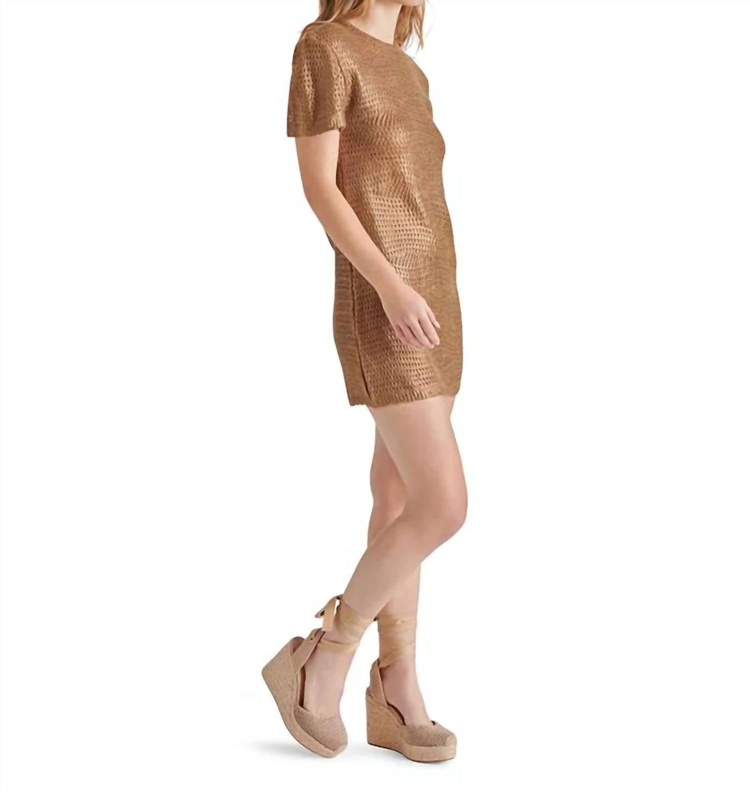 O minivestido perfeito para os meses mais quentes. Apresentamos o Vestido Santana da STEVE MADDEN, um item essencial para o seu guarda-roupa de férias de verão. Este minivestido apresenta uma silhueta relaxada com mangas curtas e um design minimalista em tom caramelo texturizado, perfeito para um estilo descontraído. Material: Acrílico. Fecho: Puxe para vestir. Cuidados: Lavar somente à mão. Eleve o seu look de férias com esta peça atemporal.
