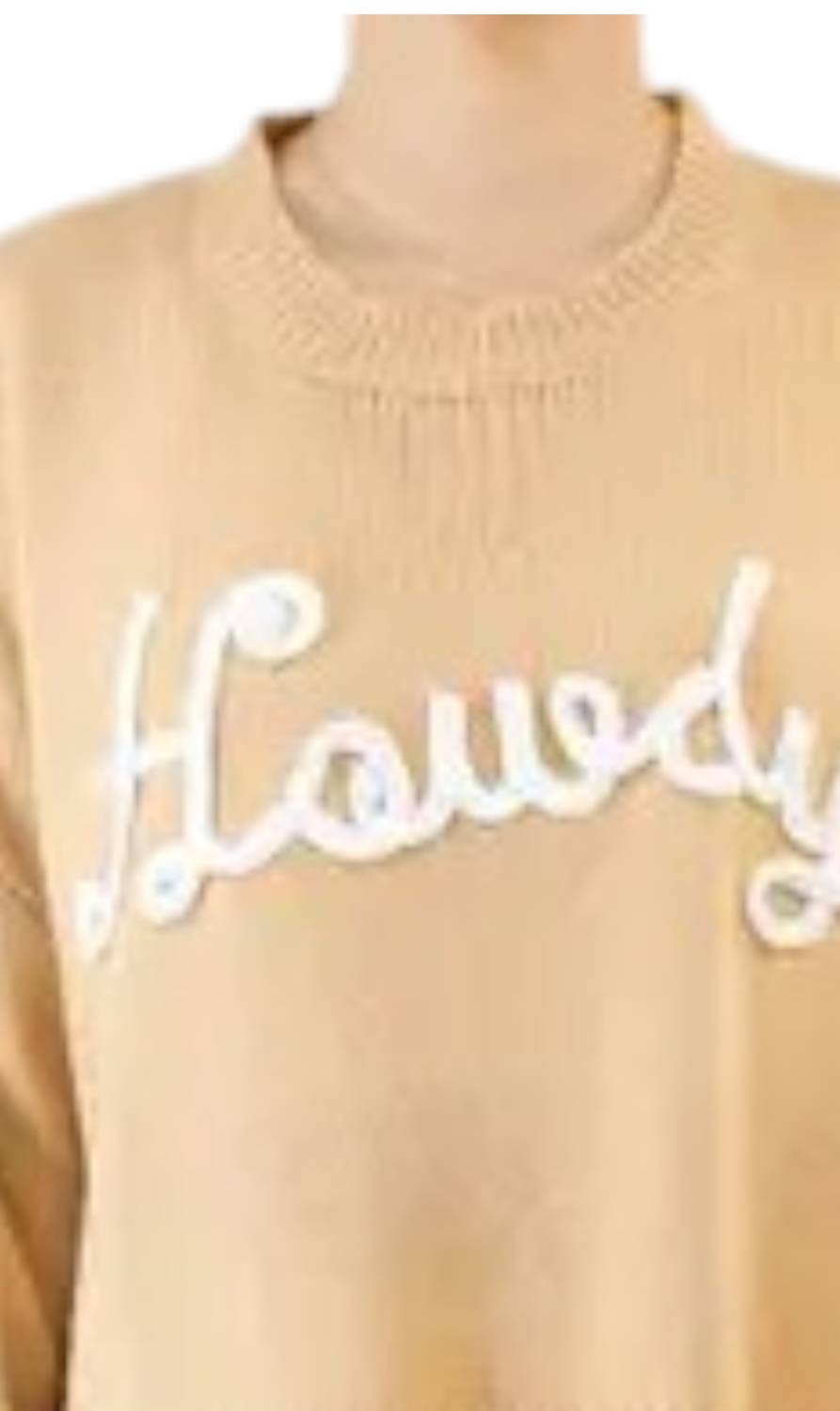 Experimente a combinação perfeita de conforto e estilo com este suéter moderno de gola redonda, projetado para elevar seu guarda-roupa sem esforço. Combine-o com seu jeans e mocassins favoritos para o look perfeito. Mantenha-se aquecido e confortável nesta temporada de festas com o suéter de gola redonda e manga comprida Howdy da Vanner House. Feito 100% em acrílico, este suéter bege apresenta uma estampa gráfica em estilo preppy. Com mangas compridas, é perfeito para o outono e ocasiões de Ação de Graças. Com um fecho prático, os cuidados com este suéter feminino são simples: lave na máquina e deixe secar na horizontal.