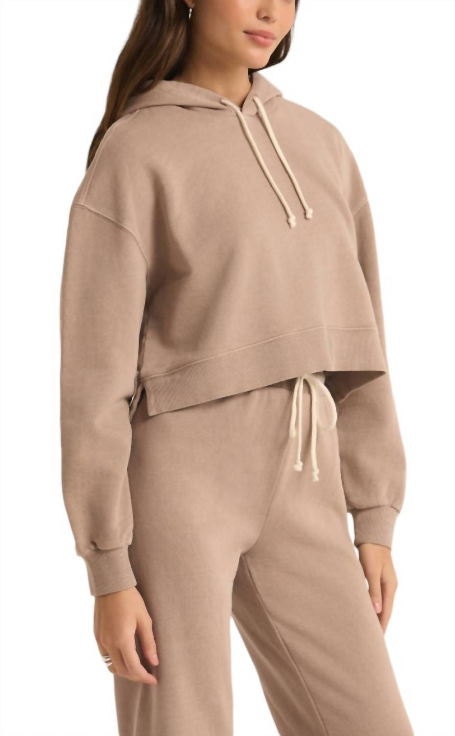 Apresentamos o moletom Jacobi da Z Supply, um item essencial em um tom latte chique para o seu guarda-roupa casual. Este moletom feminino de cor sólida possui mangas longas e um decote com capuz confortável, garantindo estilo e aquecimento. Confeccionado em 100% algodão, oferece um toque aconchegante e fecho de pressão para facilitar o uso. Perfeito para usar com sobreposições ou sozinho, este moletom complementa qualquer look sem esforço.