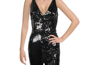 Dress The Population Macacão Feminino Preto com Lantejoulas e Gola V Tamanho Médio