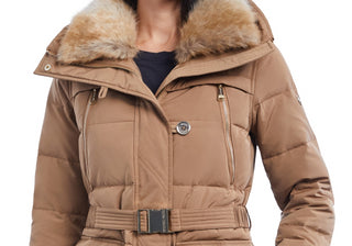 Casaco acolchoado com capuz e gola de pele sintética Michael Michael Kors feminino, tamanho M