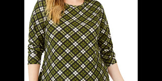 Blusa feminina Michael Kors Plus com estampa de manga comprida, verde, tamanho 2X