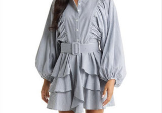 Vestido com babados da coleção Vici - Branco/Azul-marinho, tamanho pequeno