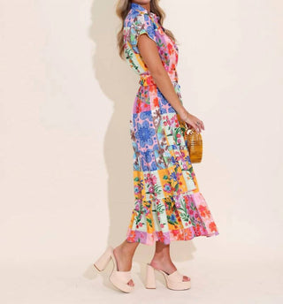 Blu Pepper - Vestido curto listrado com decote em V e botões em camadas