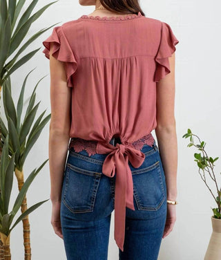 Blu Pepper - Top curto de manga curta com acabamento em renda e amarração nas costas