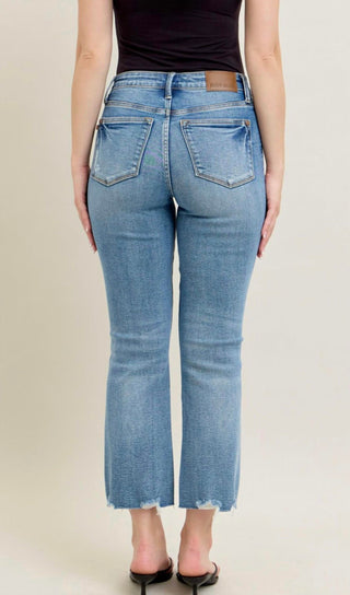 Judy Blue - Calça flare vintage wash destroy hem
