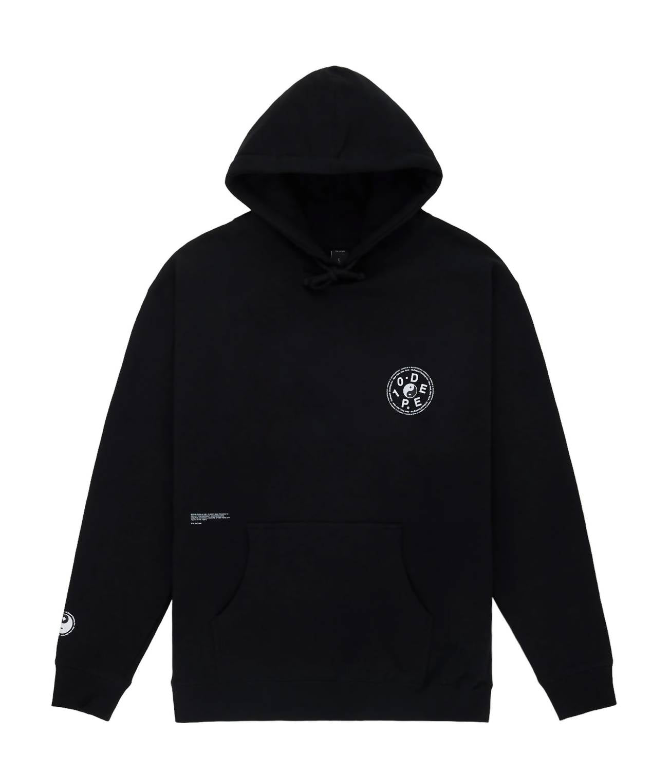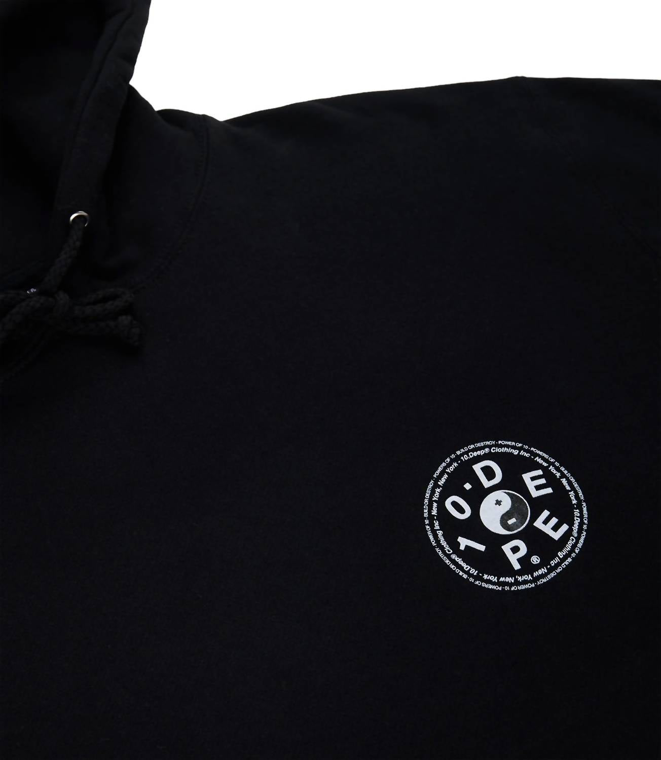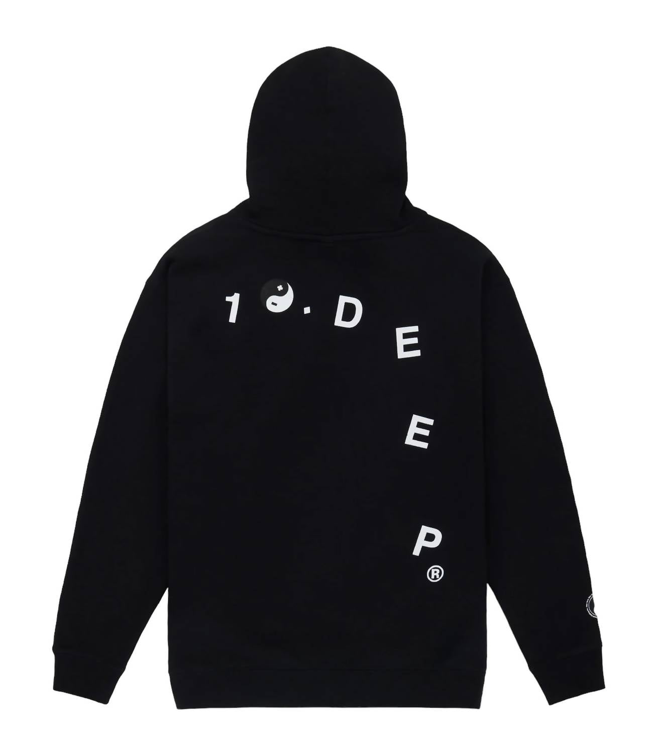 Este moletom com capuz em fleece de algodão premium apresenta estampas serigrafadas na frente, nas costas e na manga direita. Inclui capuz ajustável por cordão, punhos e bainha canelados e um bolso tipo canguru na frente. Confeccionado em 100% algodão, pode ser lavado à máquina em água fria. Fabricado nos EUA.