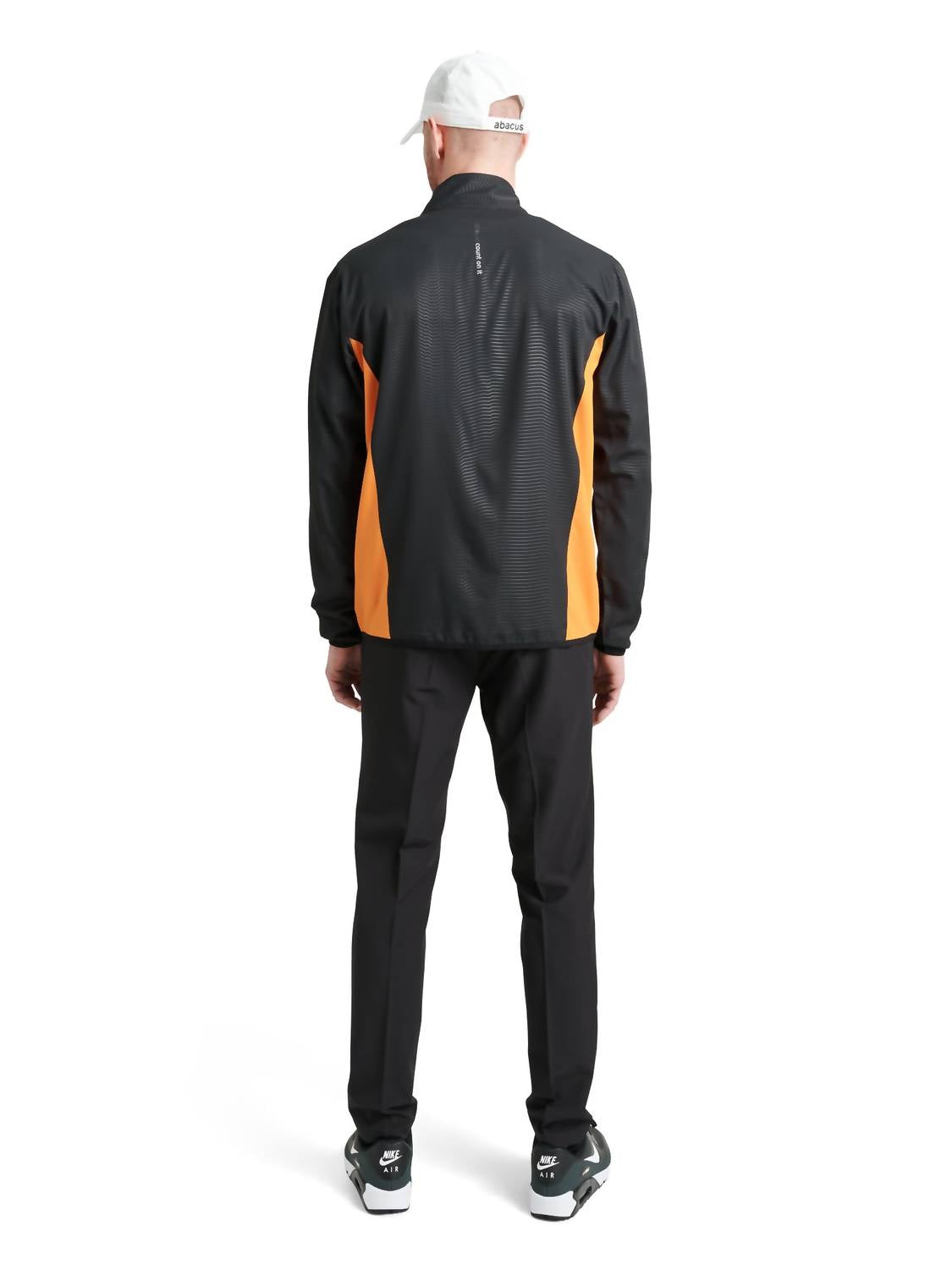 Introducing the Lanark Stretch Wind Jacket by Abacus Sportswear US, a stylish addition to your golf wardrobe. Crafted from recycled polyester, this windbreaker features long sleeves, a solid and transparent pattern, and offers a full front zip closure along with a zipped chest pocket for added functionality. Its elasticated sleeve and body bottom provide a snug fit, making it ideal for summer game days. Care for this lined jacket by machine washing and tumble drying when needed.