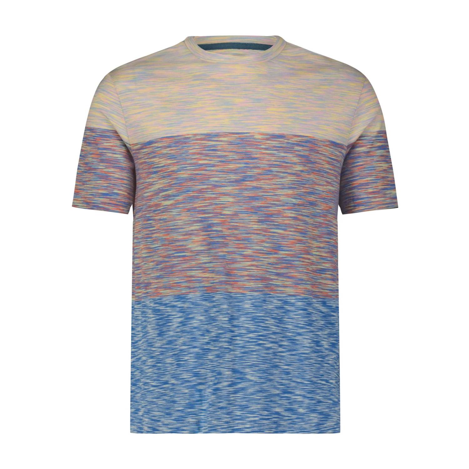 Elevate your travel wardrobe with the Luchiano Visconti Men's Space Dyed T-shirt, a statement piece in aqua, green, and fuchsia. This short sleeve tee, crafted from 2-ply 100% mercerized cotton, offers a modern fit with a visually stunning stripe pattern. This crewneck shirt is designed without pockets for a sleek silhouette and features a convenient pull-on closure. Care: Machine wash.