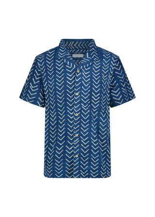 Lucky Brand - Camisa estampada de manga curta com gola estilo acampamento