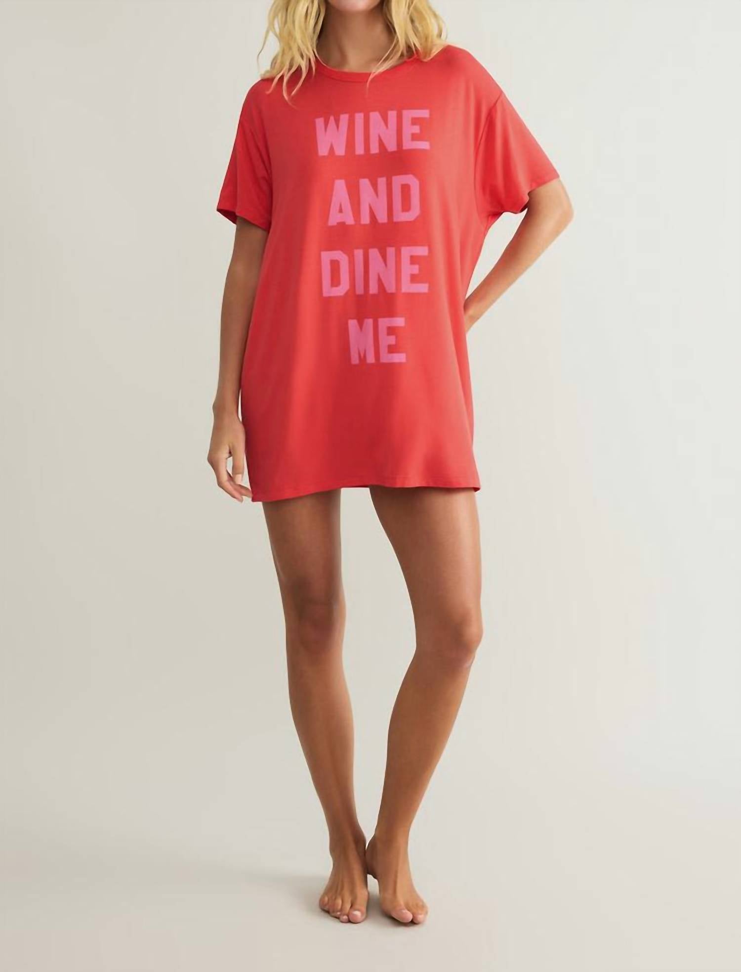 Delicie-se com o conforto macio e amanteigado da Camisa Noturna Wine & Dine da Z Supply, adornada com a divertida estampa gráfica "Wine and Dine Me". Esta camiseta de manga curta, queridinha, é confeccionada em uma luxuosa mistura de malha de rayon e modal, com 46% rayon, 46% modal e 8% elastano, proporcionando um caimento oversize e leveza média. Fácil de usar com seu fecho pull-on e gola redonda clássica. O cuidado é simples: lave na máquina com água fria, ciclo suave e seque na secadora em temperatura baixa ou na horizontal.