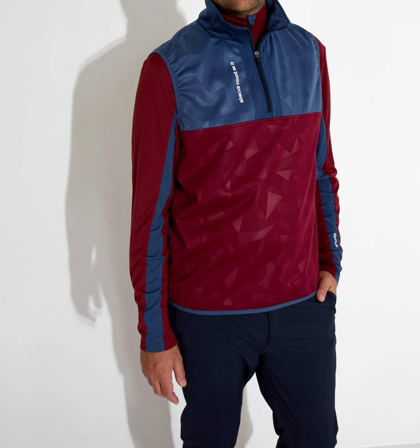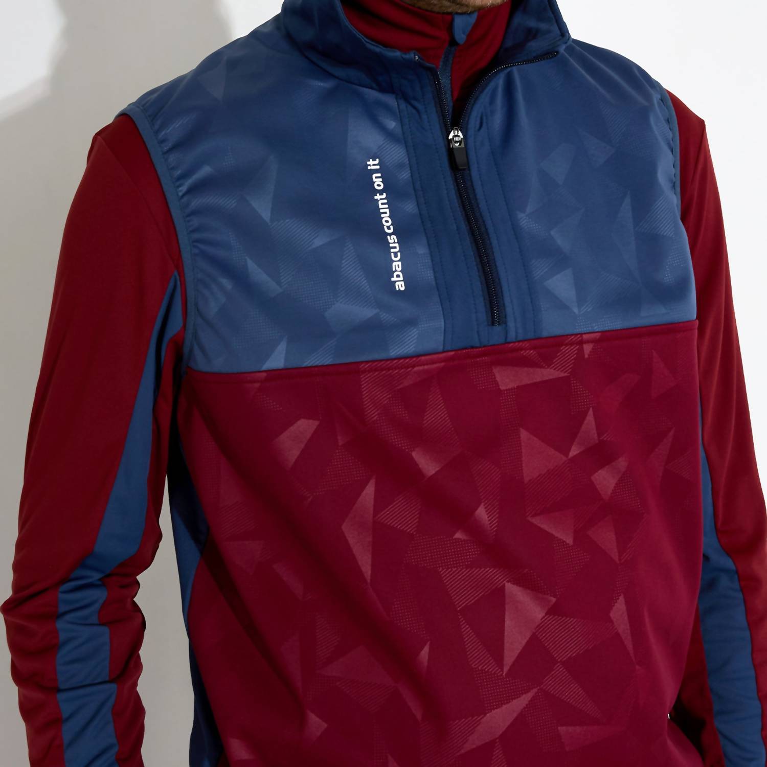 Elevate your golf attire with the Kingsbarn Hybrid Vest by Abacus Sportswear US in a striking cranberry shade. This sleeveless vest combines softshell fabric at the front and shoulders with a stretchy fleece back, offering a perfect blend of windproof and water-repellent properties. Designed with a half-day zip closure, it's practical for spring's breezy days. Care for this PFC-free product couldn't be easier with machine wash and tumble dry instructions.