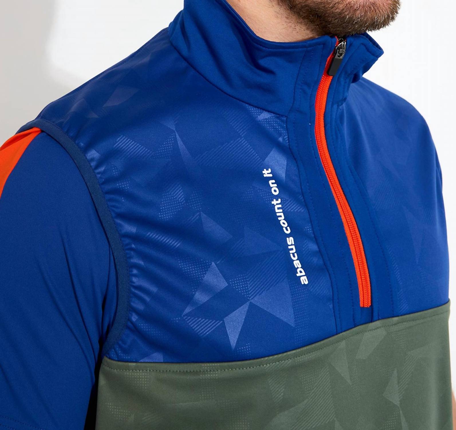 Introducing the Kingsbarn Hybrid Vest by Abacus Sportswear, a sleeveless marvel crafted for athleisure enthusiasts. Made from a sophisticated combination of stretchy fleece and windproof, water-repellent softshell fabric, this vest features a unique blue, green, and orange color combination. Closure includes a half-zip at the front for ease and style, while machine wash and line dry care make maintenance a breeze. Perfect for game days and slightly warm windy Spring outings, this vest ensures comfort and durability in every wear.