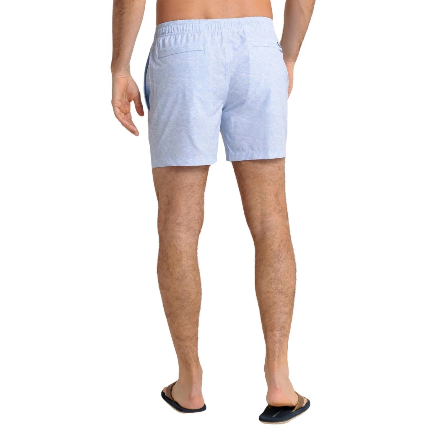 Dive into style with the Shark Bait Swim Trunk by Southern Tide, crafted in captivating cerulean hues. These swim trunks offer a comfortable fit with a 6" inseam and a fully elasticated waistband, made from a durable polyester blend. Practical features include front on-seam pockets and a secure back zipper pocket for your valuables. Care is easy with machine wash instructions, perfect for a carefree beach day this summer.