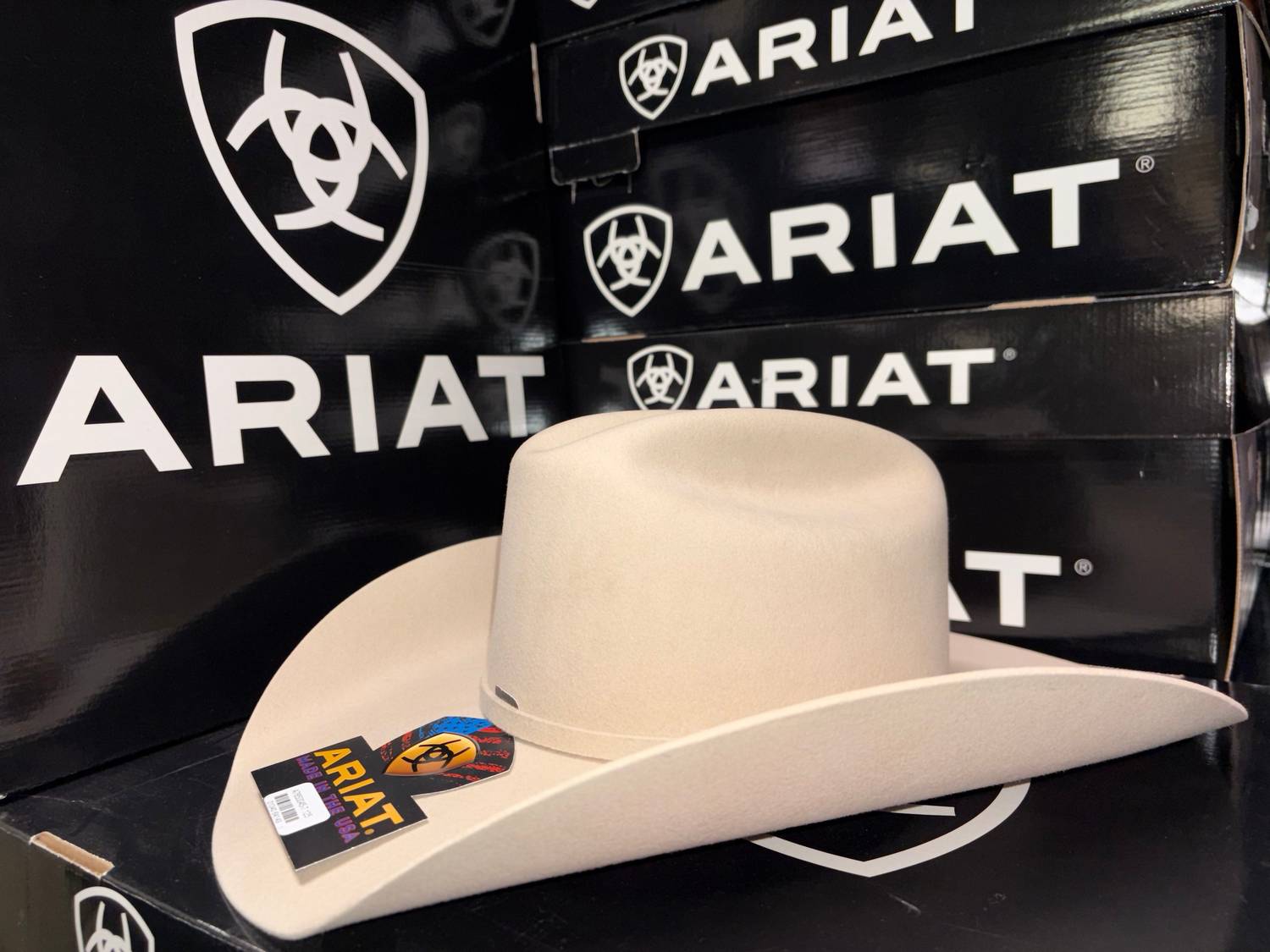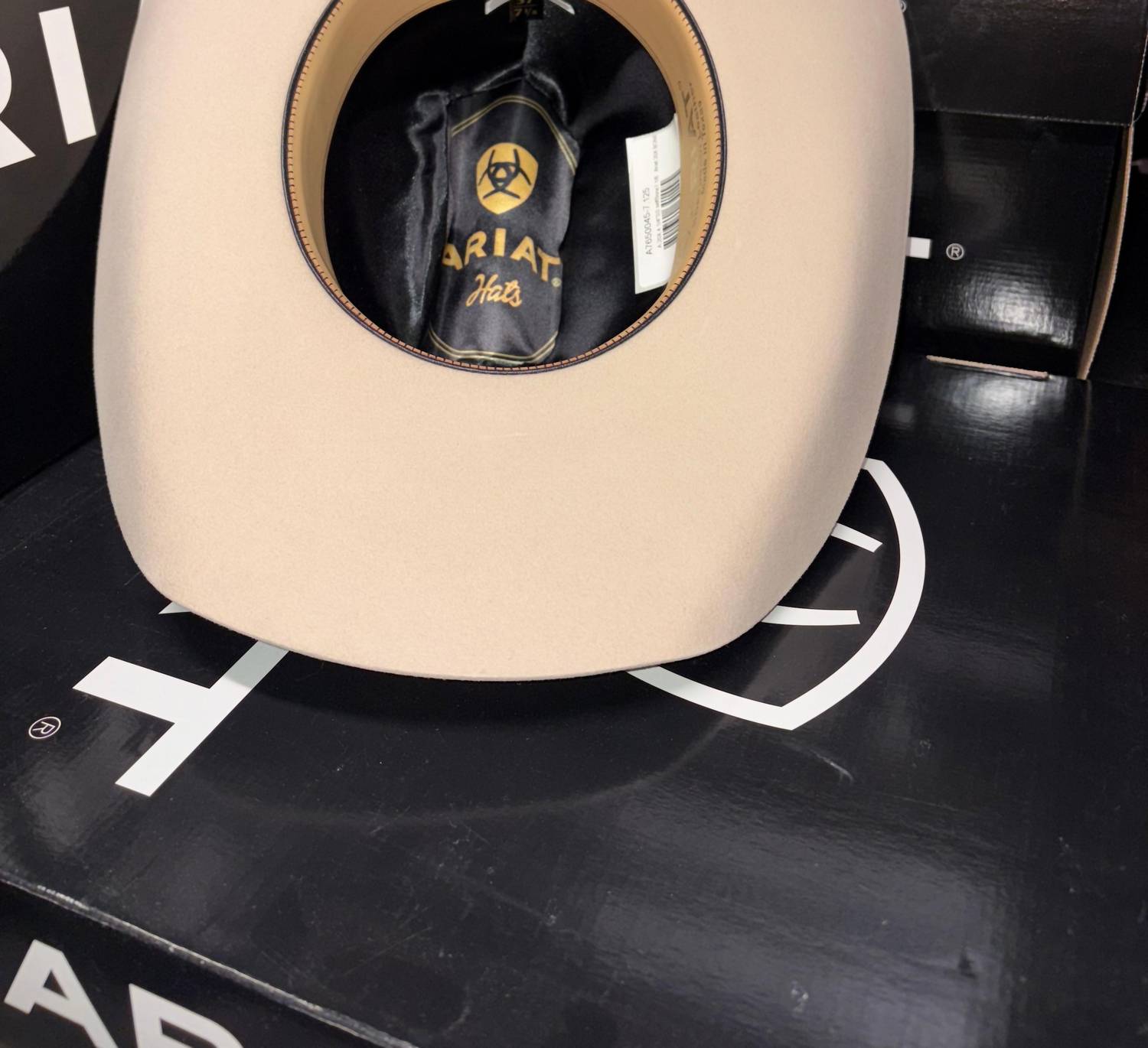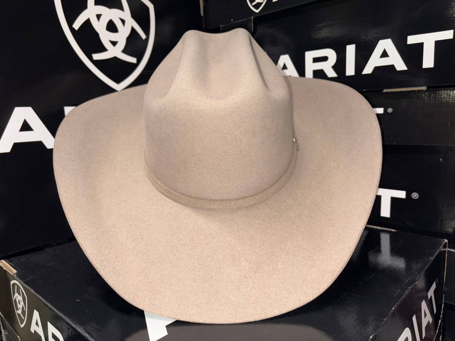 Introducing the Men's Western Ranchers Crown Hat by ARIAT, expertly crafted in the USA to offer both style and comfort. This hat is made from a luxurious beaver and rabbit fur blend, featuring a classic 4-1/4" crown and brim. Inside, you'll find a genuine sheepskin sweatband and black Italian silk lining for added elegance. Available in sizes 6-7/8 to 7-5/8, each hat comes individually boxed and is perfect for any discerning gentleman.