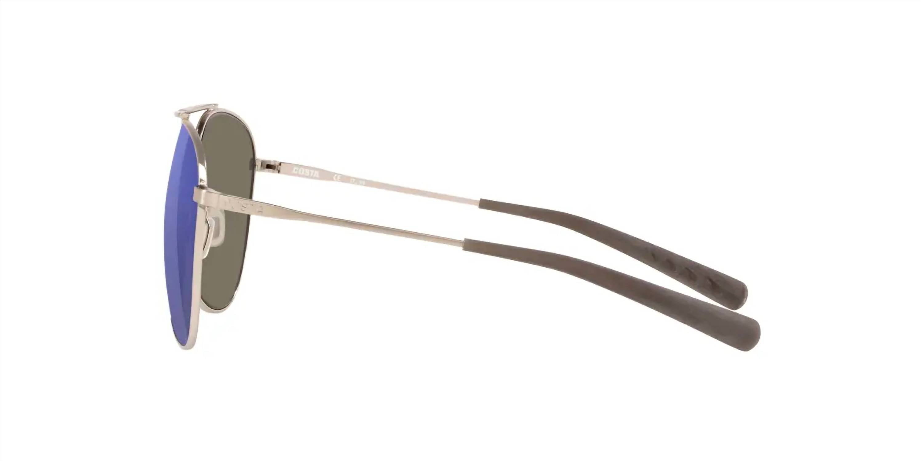 Discover the Cook Aviator Sunglasses by Costa Del Mar, featuring corrosion-free titanium frames in a striking brushed palladium and blue mirrored polarized finish. These lightweight frames offer exceptional flexibility, highlighted by adjustable nose pads and complemented by Hydrolite for a secure fit. The polarized polycarbonate lenses ensure clear vision with a base curve of 6, while the dimensions include a frame width of 141 mm, bridge width of 15 mm, lens width of 60 mm, lens height of 51.5 mm, and temple arm length of 138 mm. Ideal for navigating unpredictable waters in style.