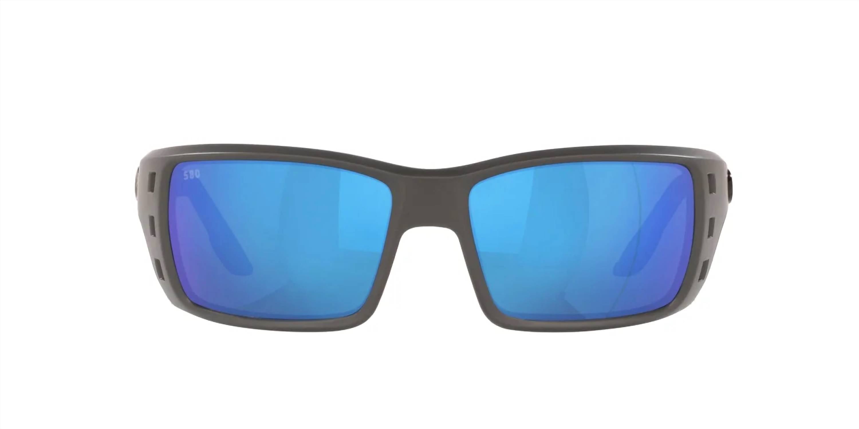 Introducing the Costa Del Mar Men's Permit Sunglasses, designed for serious fishermen and sports enthusiasts. These sunglasses come in a matte gray frame paired with blue mirror polarized glass lenses, ensuring clarity and reduced glare. They are constructed with a co-injected Hydrolite™ lining, flexible hinges, and side vents for a secure fit and optimal comfort. Featuring a base 8 decentered lens curve, these sunglasses fit a regular frame, with precise measurements of 140 mm frame width, 16 mm bridge width, 62.6 mm lens width, 40.5 mm lens height, and 125 mm temple arm length.