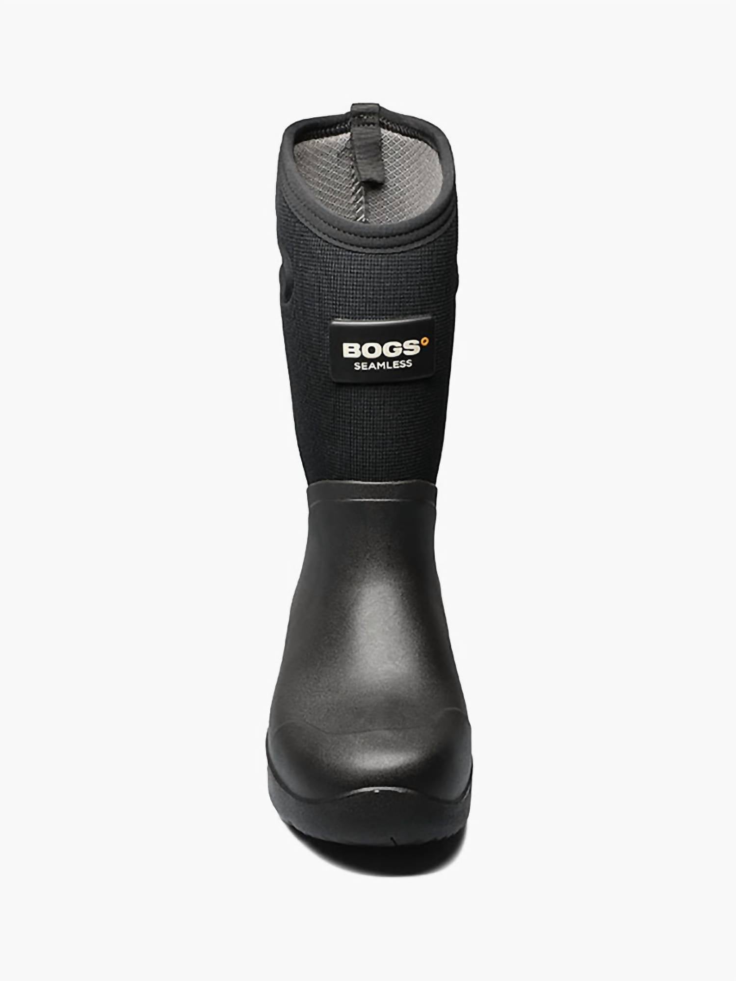 Discover the Men's Bozeman Tall Insulated Waterproof Boots by BOGS, crafted for durability and comfort in sleek black. These boots feature 7mm Neo-Tech waterproof insulation and a seamless construction, making them 30% lighter than comparable options. The eco-friendly algae-based EVA footbed supports cleaning polluted water habitats, while the EveryDry and Bogs Max-Wick lining keeps your feet dry. Self-cleaning BioGrip outsoles offer chemical and slip resistance, with Rebound technology and a Bogs Stabilizer ensuring all-day comfort and arch support. Perfect for adults seeking reliable, high-performance footwear.