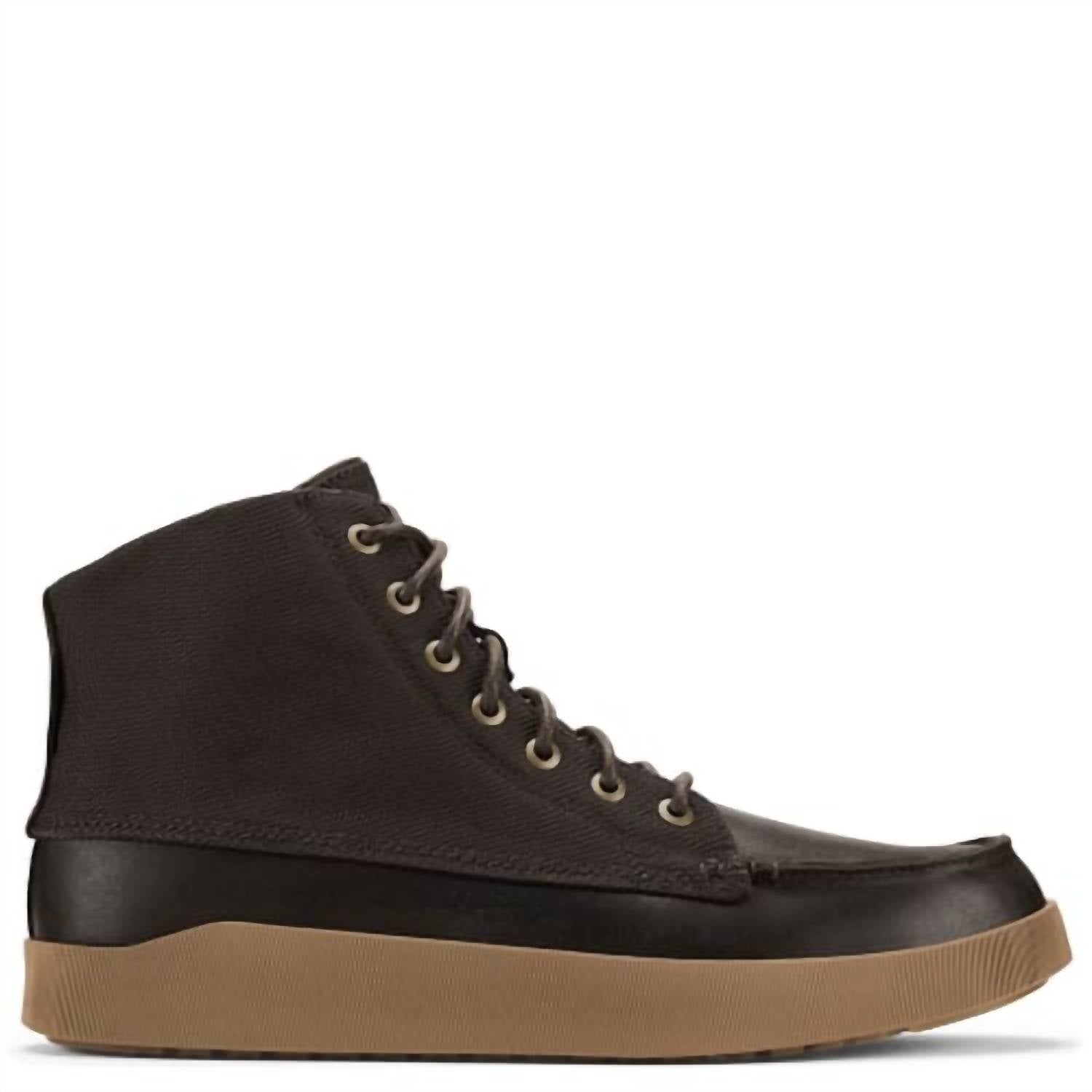 Introducing the Men’s Mōlina Boots by OluKai, expertly crafted with leather to provide rugged durability and signature comfort. These boots in dark wood color feature a round toe and flat heel, perfect for minimalist styling in the summer season. With their weather-resistant construction, they offer reliable protection with no break-in time, making them ideal for spontaneous vacation adventures. The unique ‘ohe kapala-inspired outsole design adds a touch of cultural flair, drawing inspiration from traditional kapa fabrics.