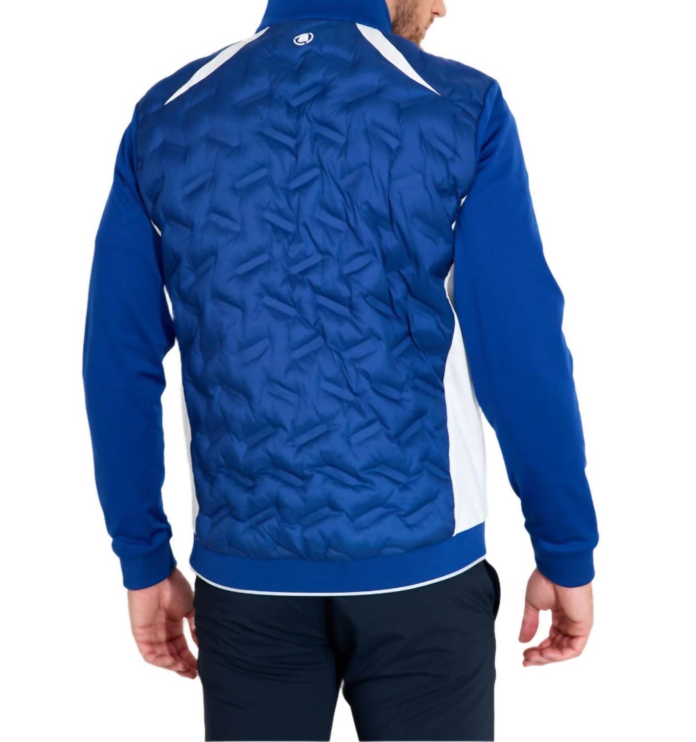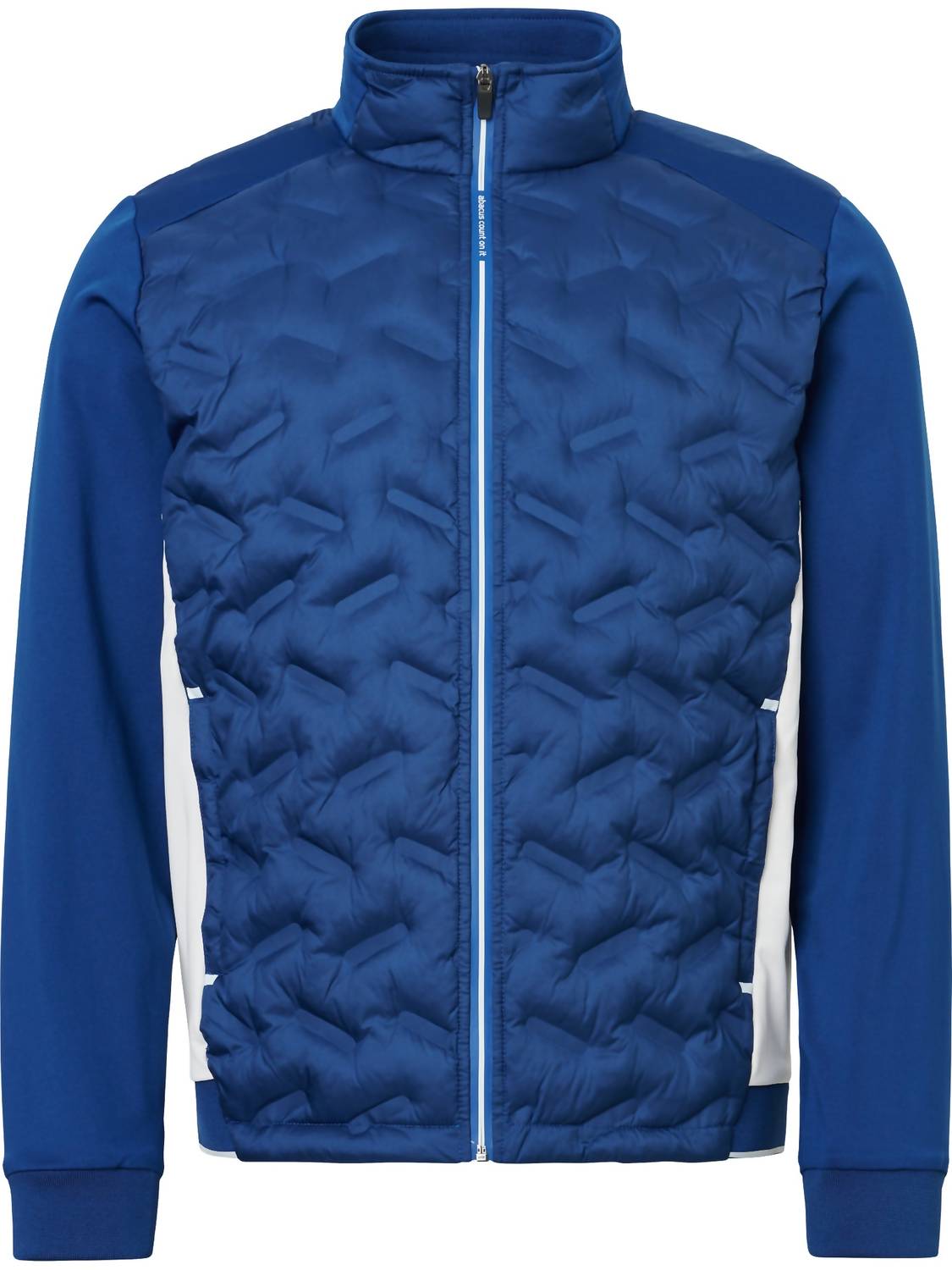 The Portrush Full Zip Hybrid Jacket by Abacus Sportswear US is engineered for the modern athlete, blending performance and comfort with style. This Atlantic/clam jacket features long sleeves and a mockneck, crafted from fleece that’s breathable and stretchable for unrestricted movement. It boasts a zip closure and solid pattern, with fully lined, seamless quilted panels on the front and back for warmth. Care: Machine wash and tumble dry. Ideal for game day or athleisure, this jacket keeps you ready for any condition with its practical design and included pockets.