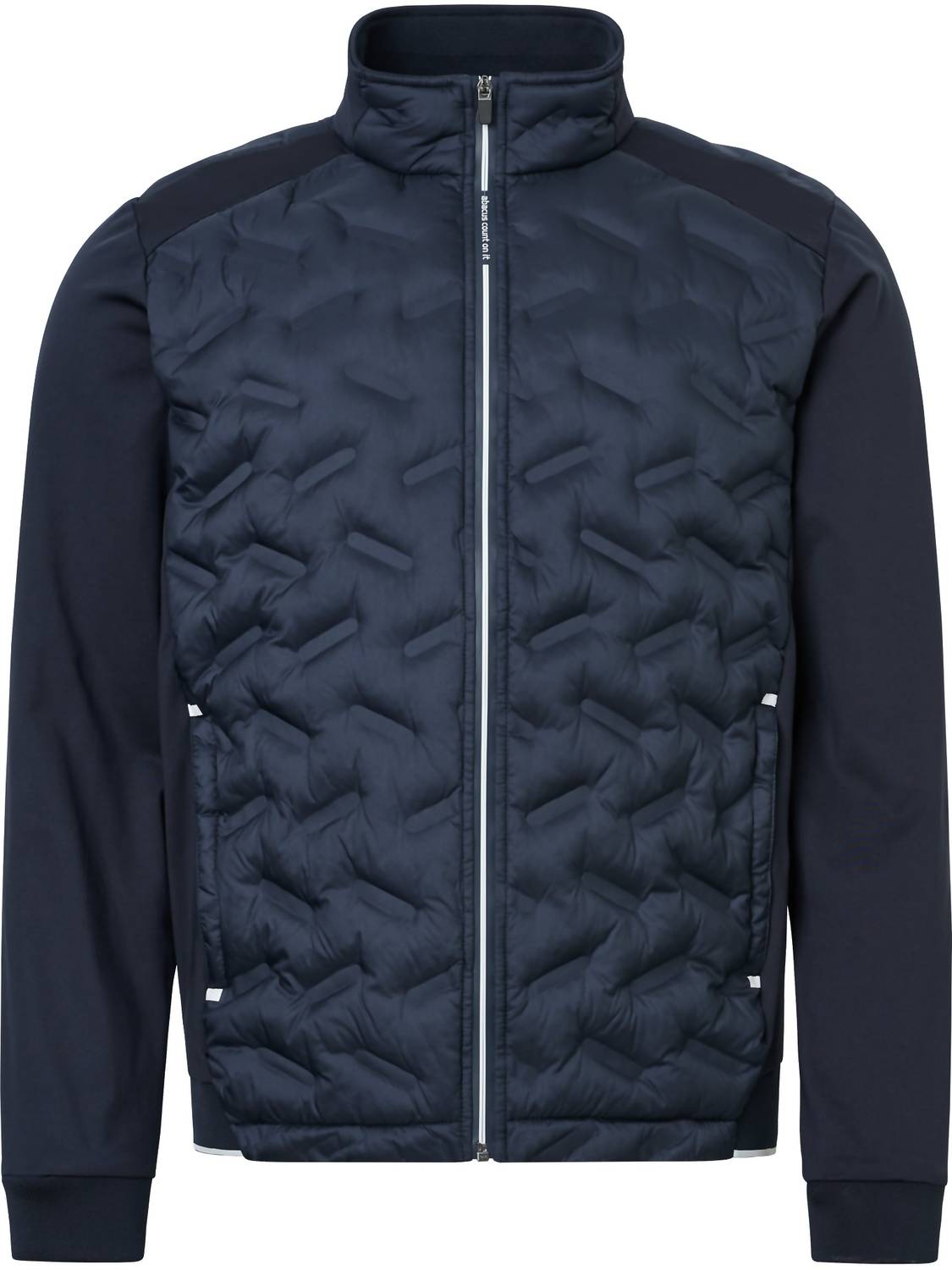 Experience ultimate performance and comfort with the Portrush Hybrid Jacket by Abacus Sportswear US, perfect for game day in a stylish navy hue. This long sleeve piece features seamless quilted, windproof panels that provide warmth, while the highly stretchable fleece allows unrestricted movement. Closure: Zip closure. Care: Machine wash and tumble dry. Ideal for spring athleisure, this solid, mockneck jacket is designed with lined pockets for added convenience.