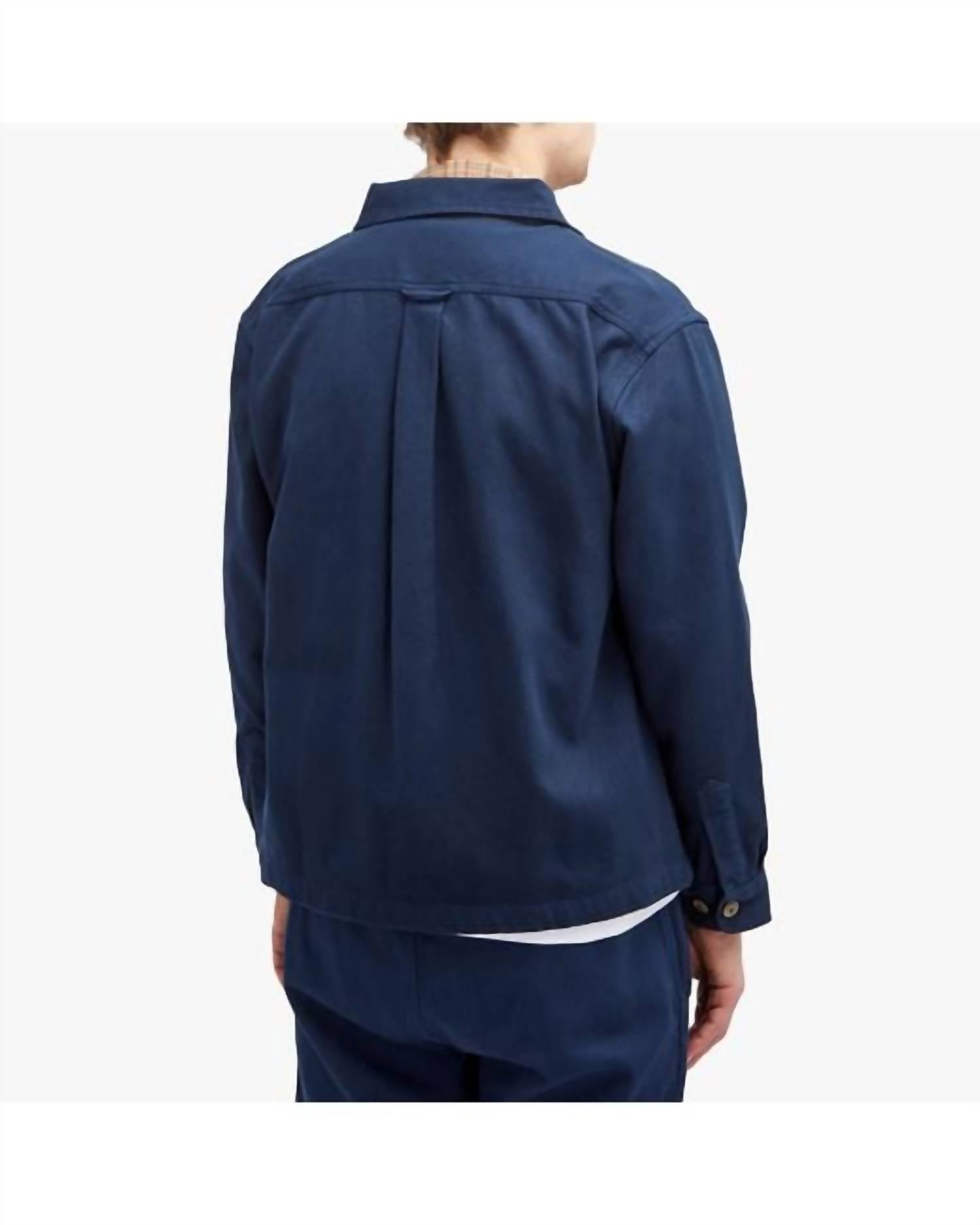 Upgrade your fall wardrobe with the Corridor Heavy Twill Military Jacket, a must-have minimalist piece in navy. This long sleeve jacket is made from 100% cotton, boasting an 8.4 oz twill construction for ensured durability and warmth. Featuring asymmetrical chest pockets and side-entry hip pockets, it combines practical design elements with a slightly short, regular fit. Crafted with care in India, the jacket is equipped with a button closure for easy wear.
