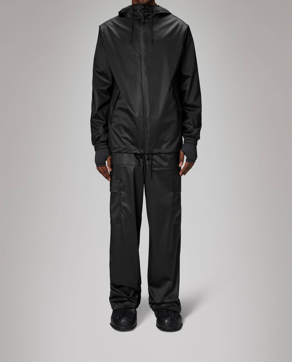 Meet the Storm Breaker Elasticated Cuffs Raincoat by Rains, a stylish unisex piece in elegant BLACK GRAIN. This raincoat features long sleeves, crafted from 100% polyester with a polyurethane coating and measuring 29.72 inches in length. It’s designed with a versatile zip closure and enhanced with waterproof features, including double welded seams and an adjustable hemline, perfect for fall weather. Effortless maintenance with machine wash instructions, this raincoat delivers on functionality and style, complete with a hood and elasticated cuffs for added protection.