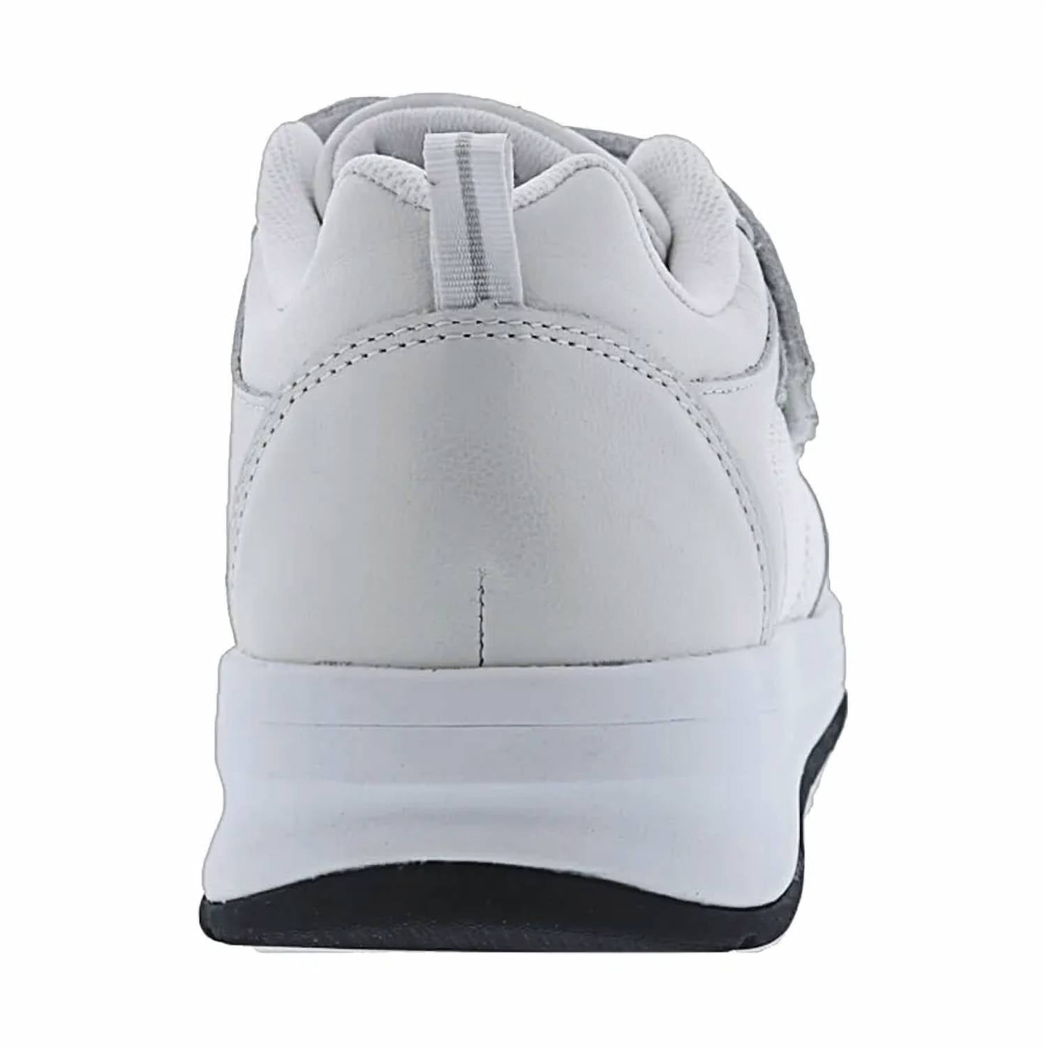 Introducing the Men's Rocket V Shoes by DREW, expertly crafted from premium white leather for ultimate durability and style. Designed with a round toe and platform heel, these athletic shoes offer a unique plus fitting system with two adjustable straps for easy wear. The Drilex-covered insoles, in collaboration with a removable ULTRON footbed, ensure comfort with built-in heel cushions and arch support. With a durable rubber outsole, EVA midsole, and a strong nylon shank, these shoes provide outstanding stability and accommodate prescribed orthotics for added convenience.