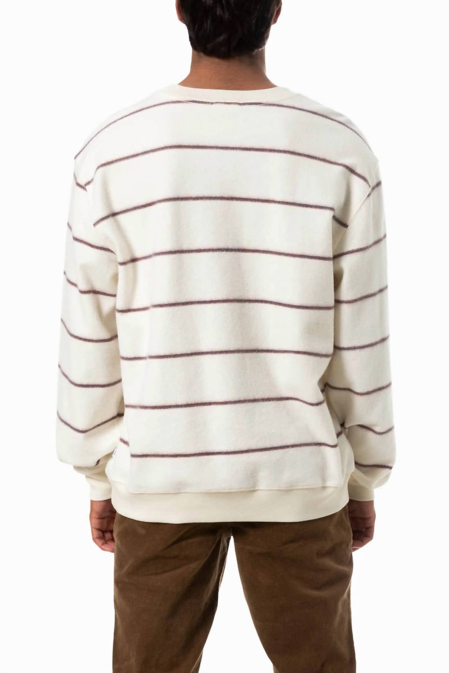 Experience the Parks Crew Sweatshirt by Katin, an essential for any preppy wardrobe with its stylish striped pattern in Vapor Grey. This long sleeve sweatshirt is crafted from custom yarn-dyed and brushed reverse fleece, known for its ultimate comfort reminiscent of a favorite hoodie's interior. The crewneck design allows for easy wear with a convenient pull-on closure. For maintenance, simply machine wash and tumble dry.