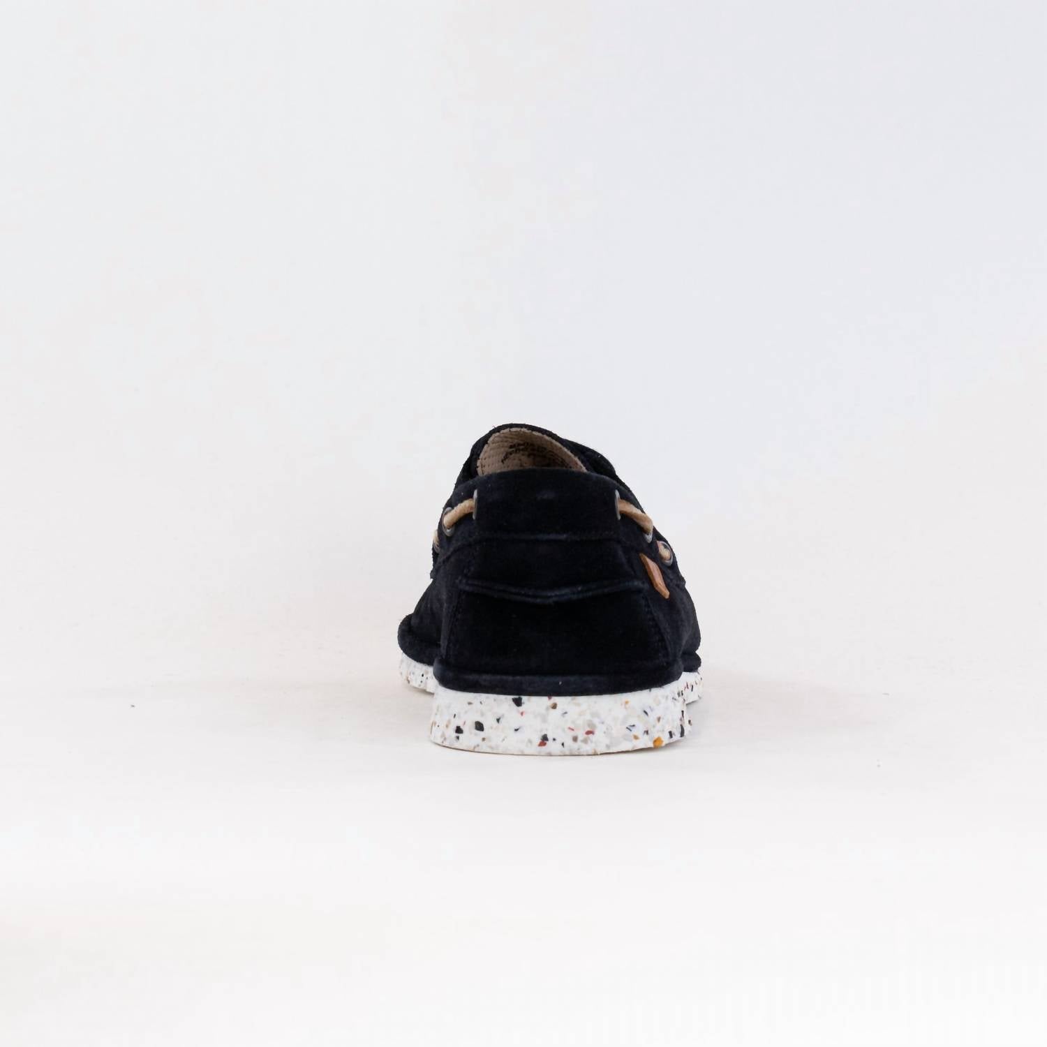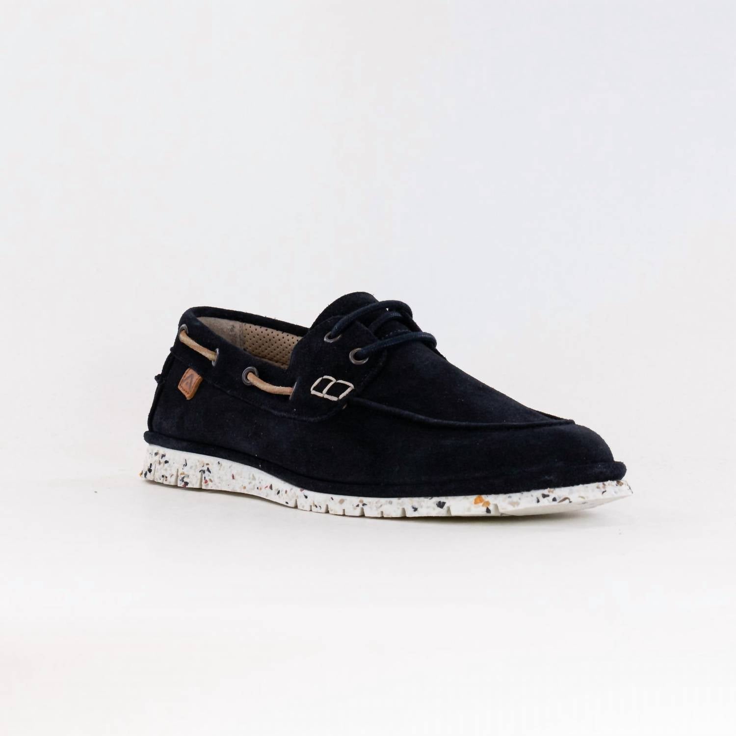 Introducing the Men's Amber Lace Up Shoe by Ambitious, a perfect blend of minimalist design and eco-friendly features suitable for summer vacations. Crafted in Portugal, this shoe combines elegant perforated suede with leather details and a comfortable leather lining. Its ultra-light outsole is made with up to 26% recycled rubber, making it a conscious choice for the environment. Ideal for seamless transitions from streets to beaches, this navy slip-on features a flat heel and a round toe shape.