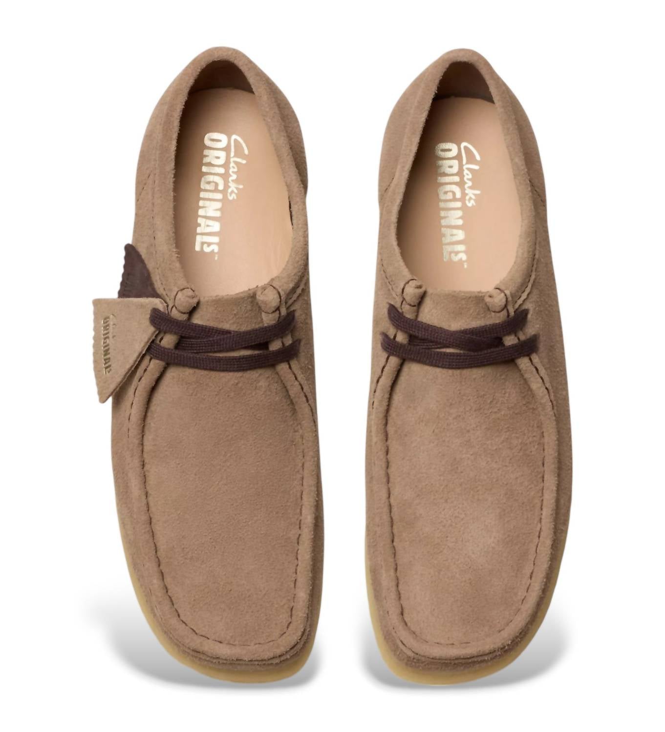 Reintroducing the Clarks Wallabee in a rich wolf suede, an iconic loafer perfect for summer wardrobes. These men's shoes feature butter-soft premium suede uppers and a breathable leather lining, providing exceptional comfort and style. The natural rubber pebble crepe sole adds a unique touch, with waxy laces and tonal Clarks Originals fobs completing the minimalist aesthetic. Perfect for anniversaries or Valentine's Day, the squared toe design ensures both timeless elegance and practicality.