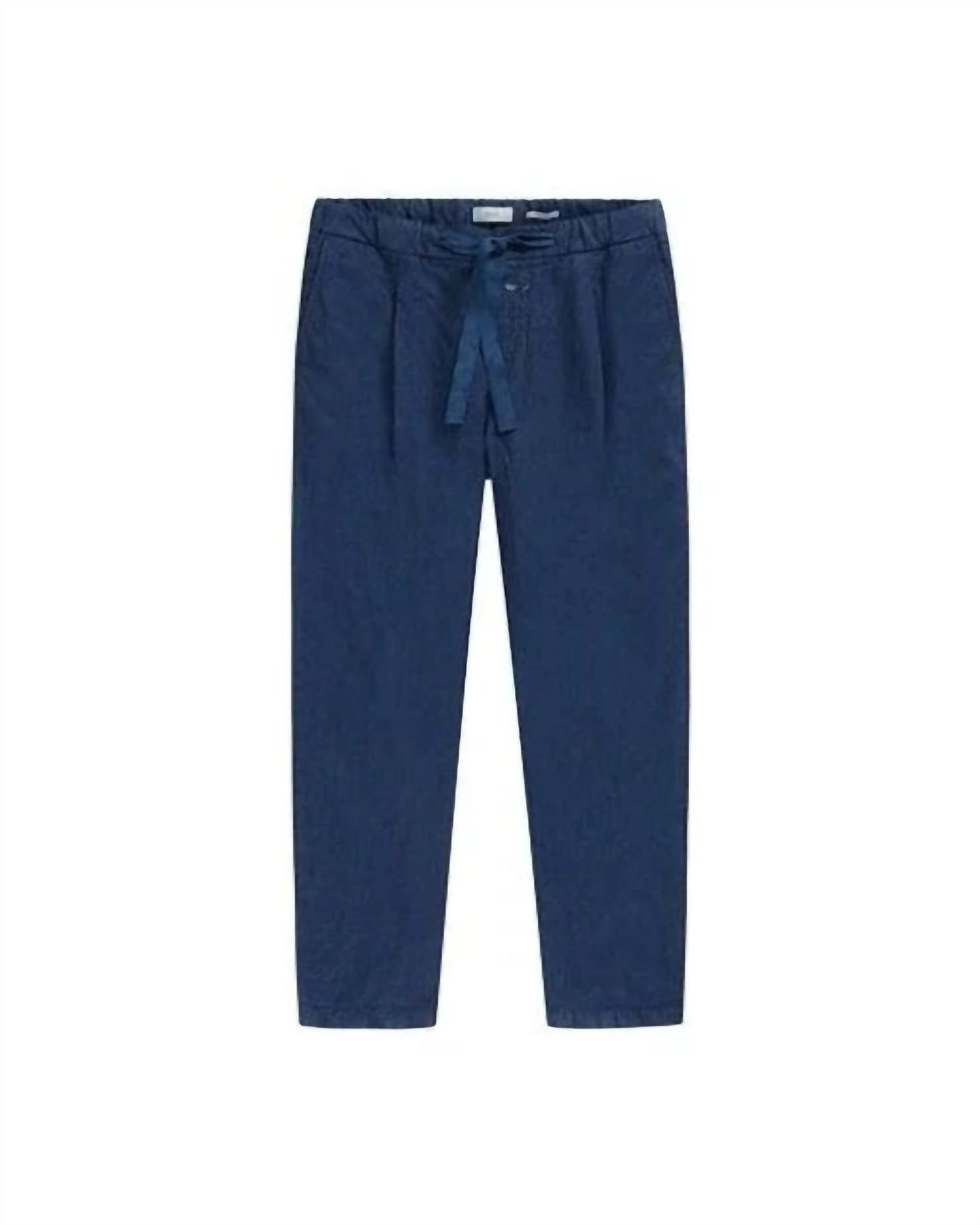 Elevate your wardrobe with the Vigo Tapered Leg Pants by CLOSED, an ideal choice in indigo blue for versatile spring attire. These men's chinos are crafted from 100% pure Italian linen, featuring a mid-rise with a regular fit and a cropped tapered leg. Closure options include a button and zip, complemented by an elastic waistband with a drawstring and practical side pockets. Made in Turkey with a garment-dyed finish for a unique washed look, these pants are easy to maintain with simple machine wash care. Inner leg length is approximately 28 inches with a front rise of 12.2 inches and a leg opening of 6.7 inches, making it a perfect choice for church or as a thoughtful Father's Day gift.