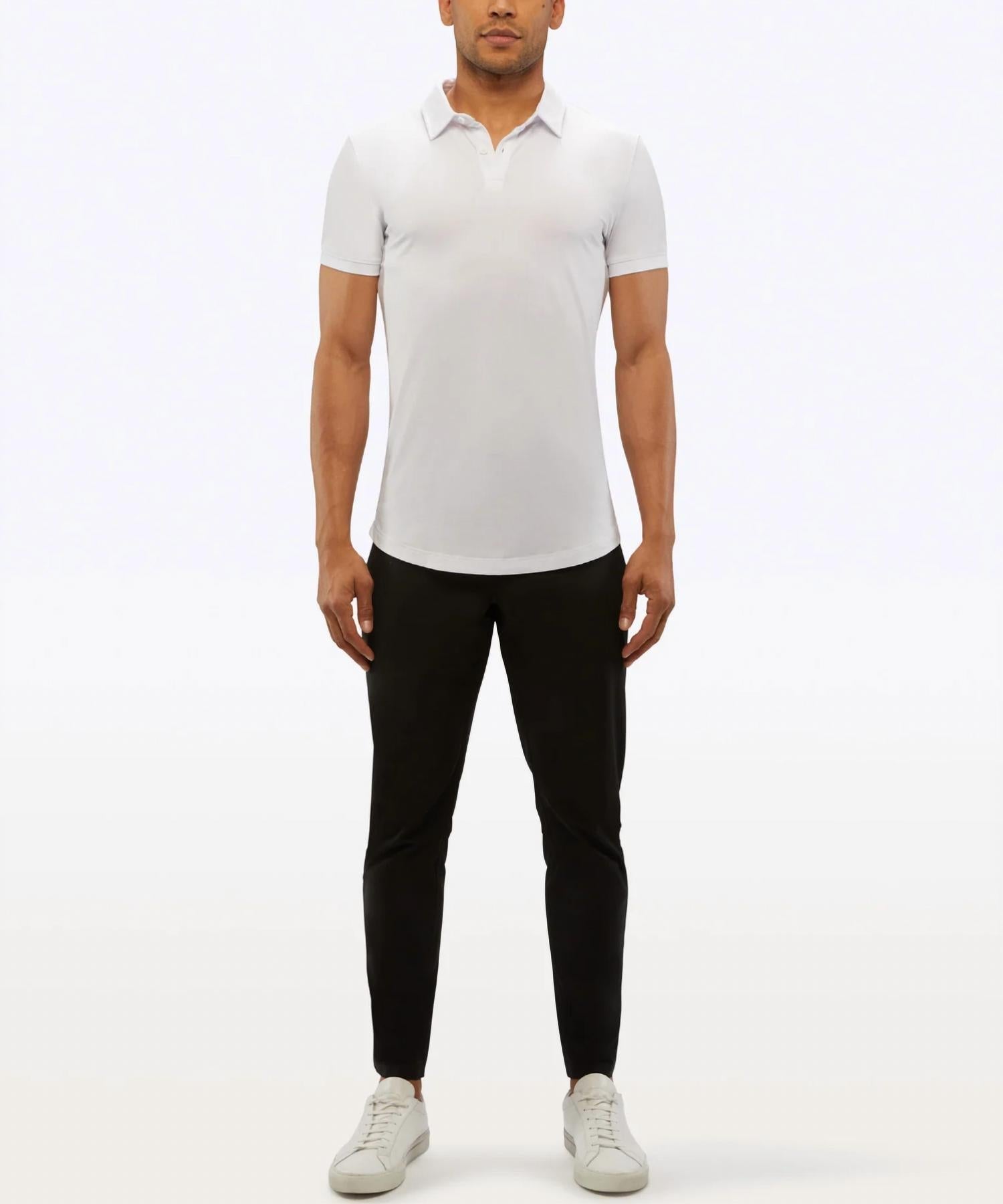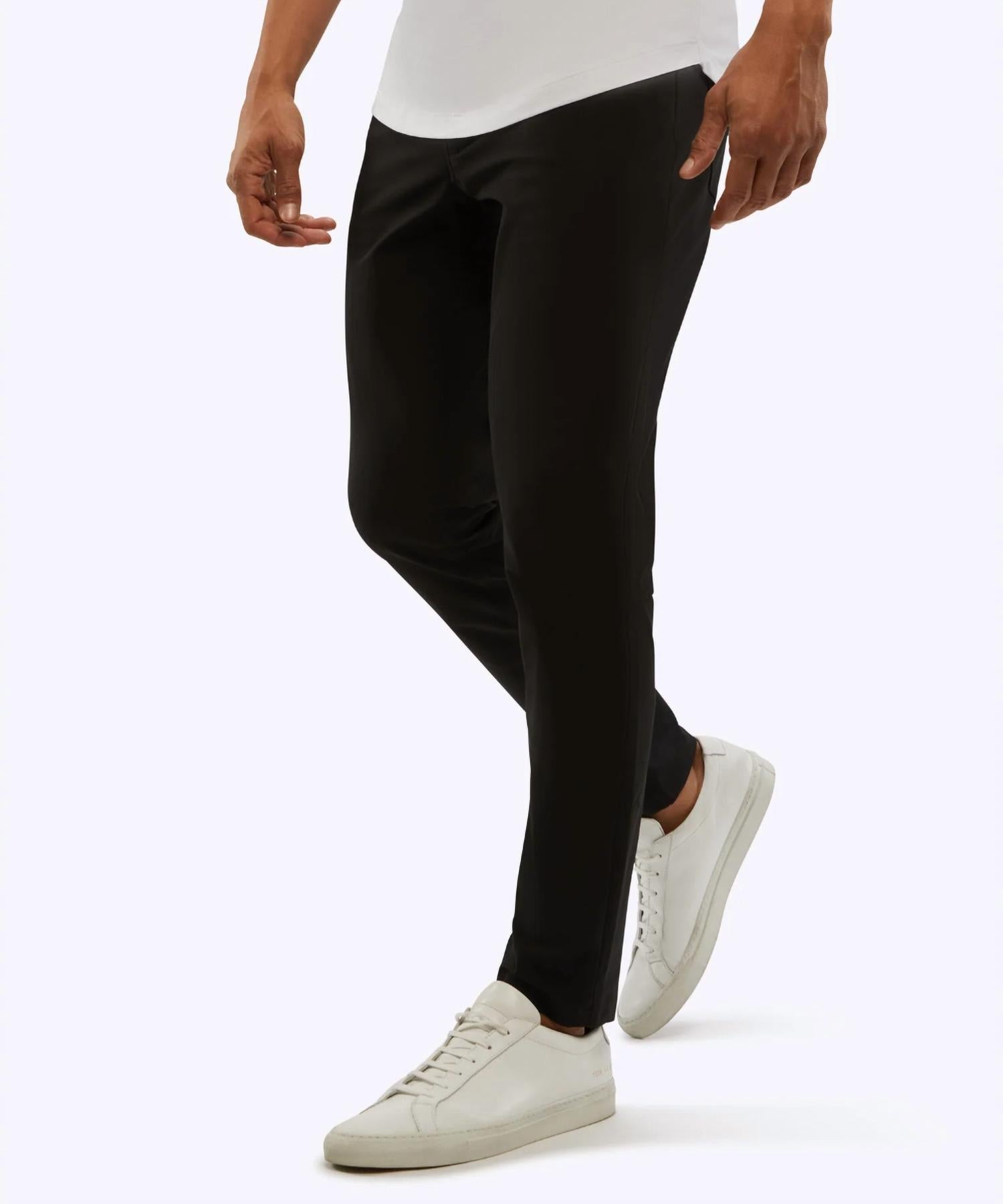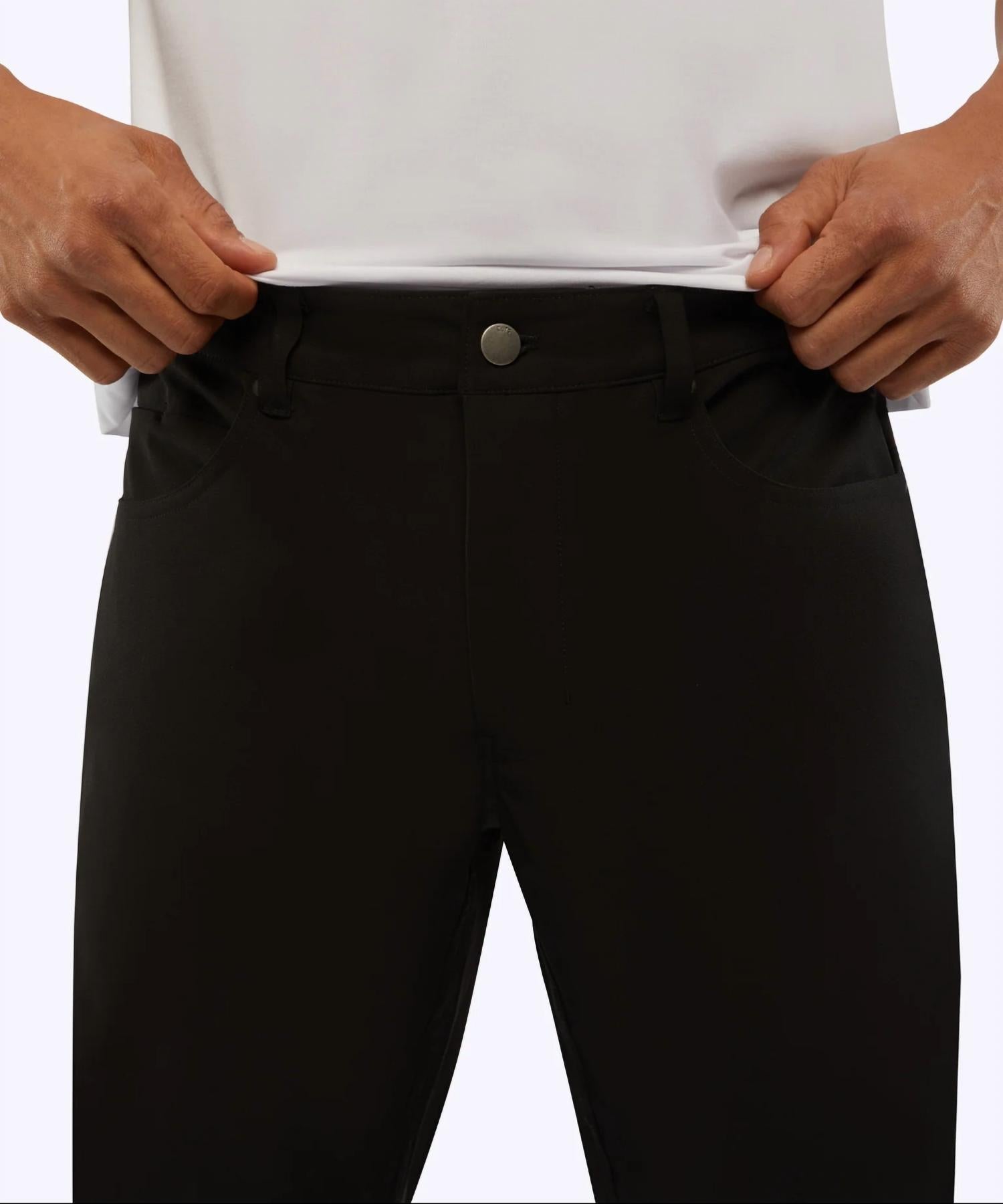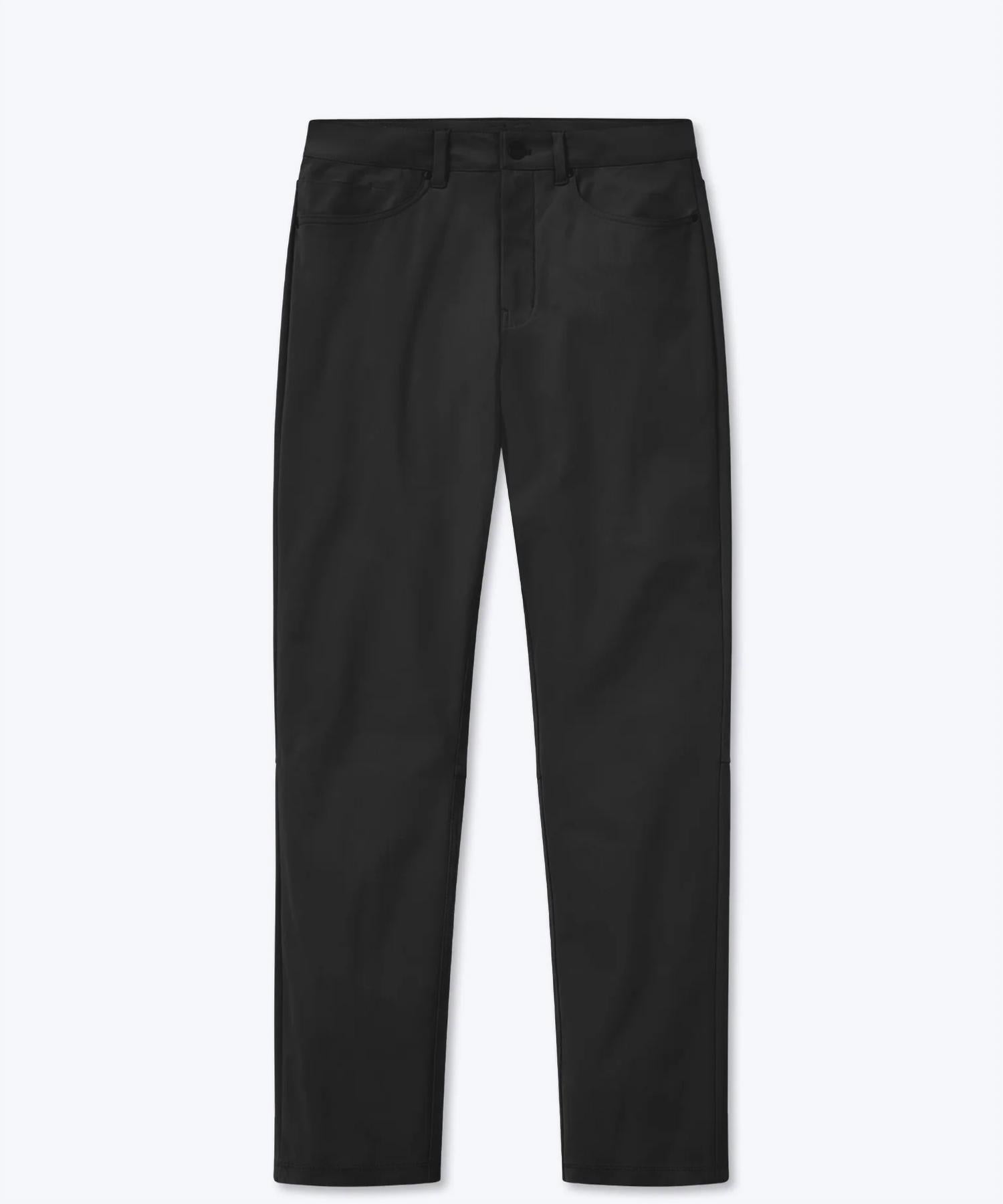 Discover the AO 5-Pocket Pant by CUTS, designed with modern men in mind for both style and comfort. Featuring a full-length slim straight silhouette, it's crafted from 53% Elastomultiester and 47% Polyester Versaknit™ material, promising outstanding 4-way stretch and breathability. Closure: Button closure. Care instructions include machine wash cold and tumble dry at low heat, while avoiding ironing. Davey, standing at 6'2" and weighing 190lbs, models a 32x32 size, ensuring a true-to-size fit for your spring dinner parties.