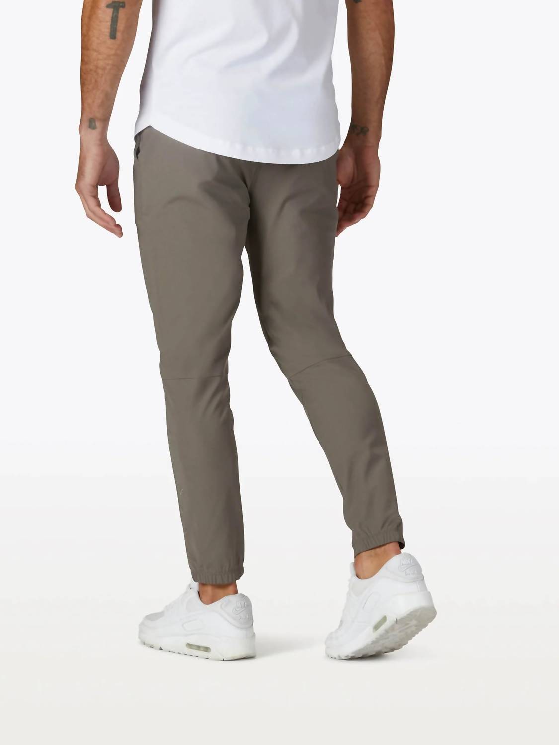 Introducing the Men's AO Jogger by CUTS in the rich Canyon shade, crafted from 100% polyester Versaknit™ fabric for unparalleled mobility and comfort. These joggers are designed with a modern jogger cuff and feature a slim fit that ends above the ankle, available in regular inseam lengths from XS (27") to XXL (29.5"). They boast a snap closure with a hook and eye, a zippered fly, and include multiple pockets such as two rear welt pockets and a secure hidden zippered pocket. Easy to maintain, simply machine wash cold, tumble dry on low heat, and avoid ironing for optimal care.