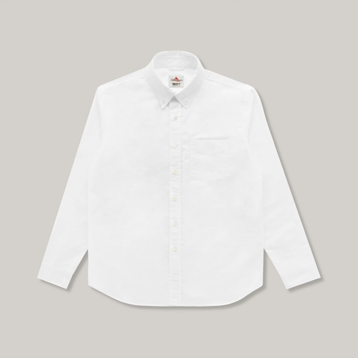 Introducing the Wooster Cotton Shirt by Knickerbocker, a refined blend of a dress and work shirt crafted for the modern man. This long sleeve, solid white shirt features a classic collar and is made from premium organic cotton. Its design includes a large chest patch pocket with a cover placket and shell buttons for a polished finish. Made for convenience, it has a button closure and is machine washable, with instructions to lay flat to dry. Perfect for occasions like Valentine's Day or anniversaries, this piece seamlessly integrates into your spring and workwear wardrobe.