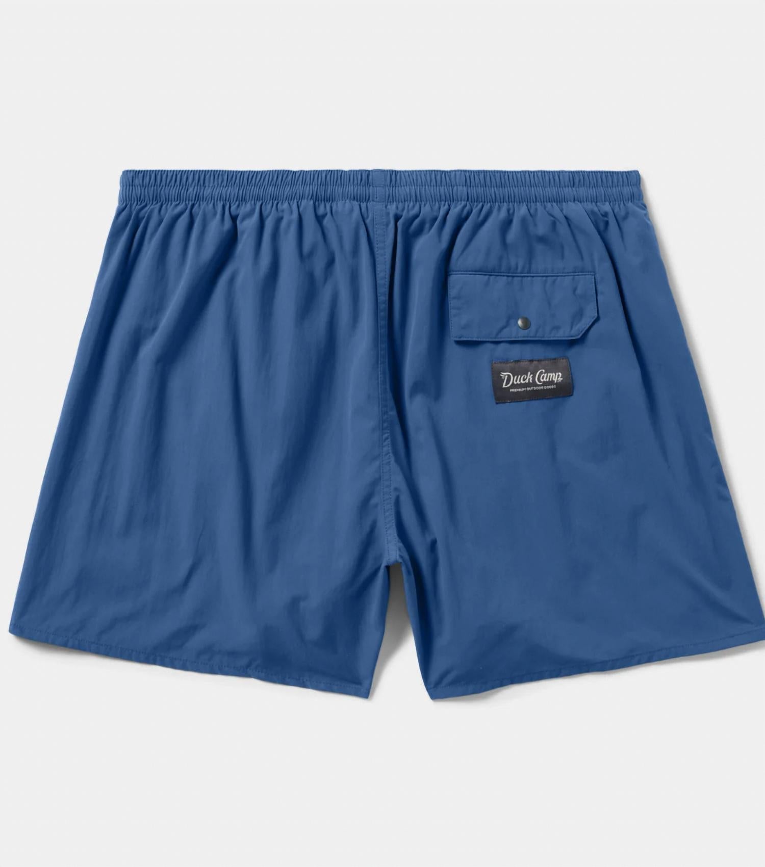 Elevate your warm-weather wardrobe with the Men's Scout Shorts 5" by Duck Camp in Tide Blue, tailored for comfort and style. These solid, minimalist hybrid shorts boast durable nylon material, featuring a 5” inseam and a built-in mesh liner for breathability. Designed with a drawstring comfort waistband and a convenient snap button back pocket, these board shorts are an essential for summer adventures. Closure: Pull on.