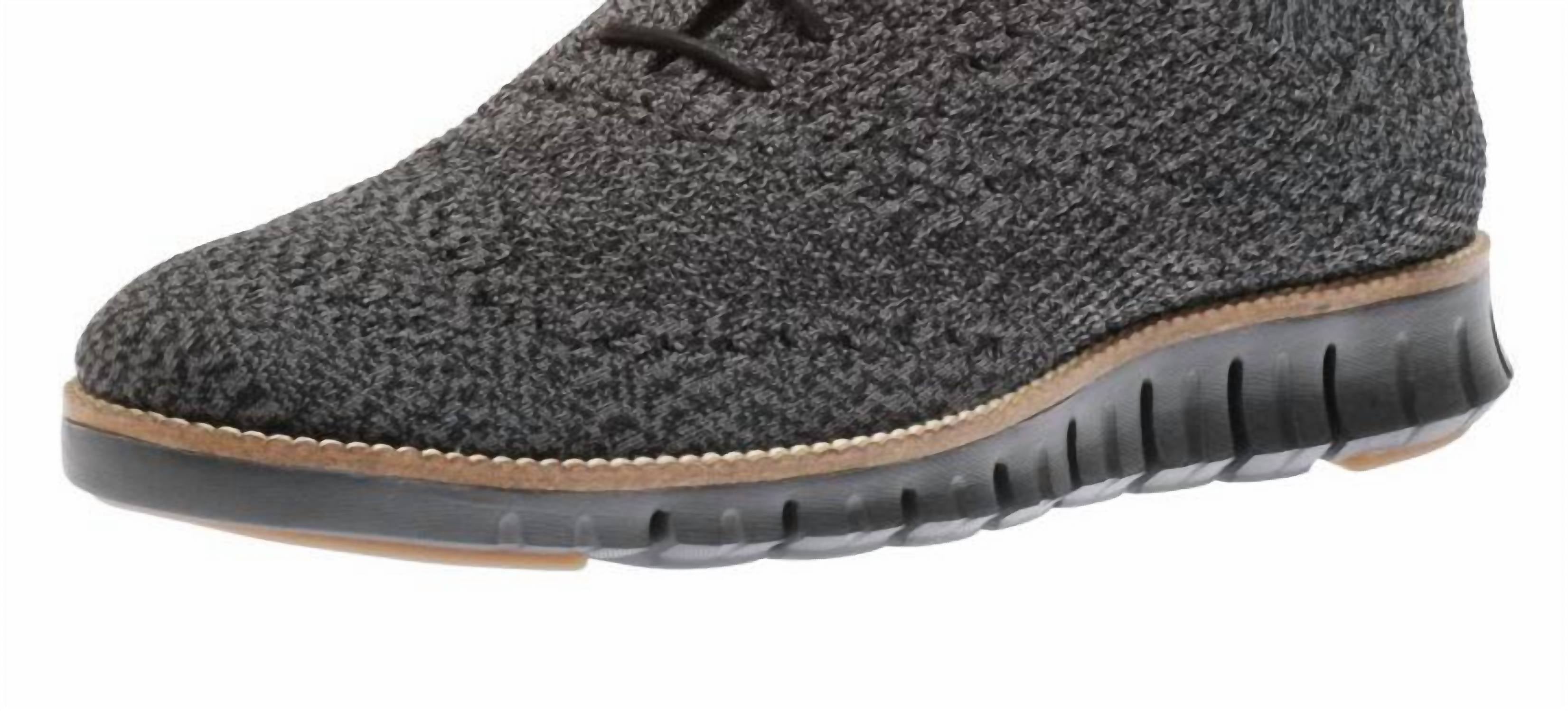 Meet the Men's Zerogrand Wingtip Shoes by Cole Haan, a must-have for summer style. With a breathable knit upper, this shoe guarantees flexibility and a comfortable sock-like fit, making laces unnecessary. The lightweight design is perfect for any occasion, easily pairing with both dressy and casual outfits. For easy maintenance, spot-clean with a mild detergent and cold water. Available in Oxford Black Stitchlite Magnet.