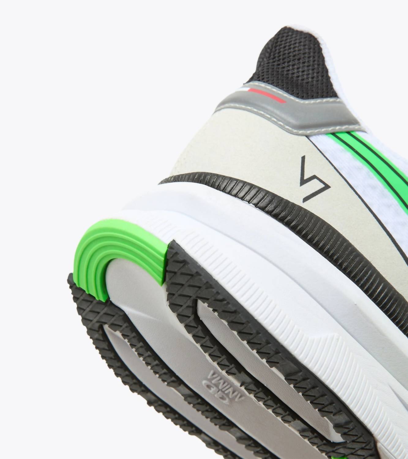 Introducing the Diadora Men's Atomo V7000 Sneaker, a hallmark of Italian craftsmanship and innovation, brought back after 30 years to revolutionize your running experience. With its lightweight design of just 260 grams (9.2 oz for size 9 UK) and a 5 mm drop, it delivers optimal cushioning and reactivity for fitness enthusiasts. These sneakers boast a modern color palette of White Green Fluo Black, perfectly blending performance with athleisure style. Made in Italy, they feature a flat heel and round toe, suitable for spring workout occasions.