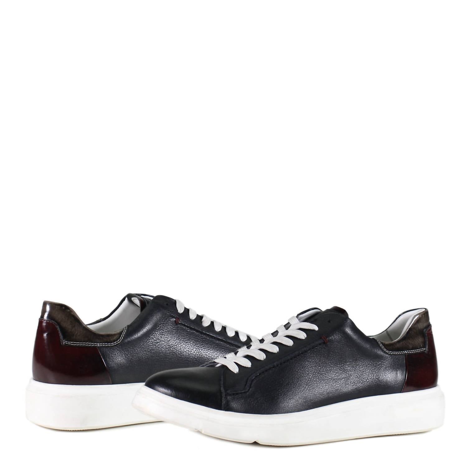 Step out in style with the Men's Tim Ber Leather Lace-up Sneaker by DIBA True, a sleek choice for any minimalist wardrobe. This sneaker features a round toe design with a classic white bottom and back panel, perfect for travel or casual outings. Crafted from leather with contrast color panels and a padded insole, comfort is guaranteed. Though lacking a heel, these flat sneakers with a heel height of under 1" are ideal for spring adventures.