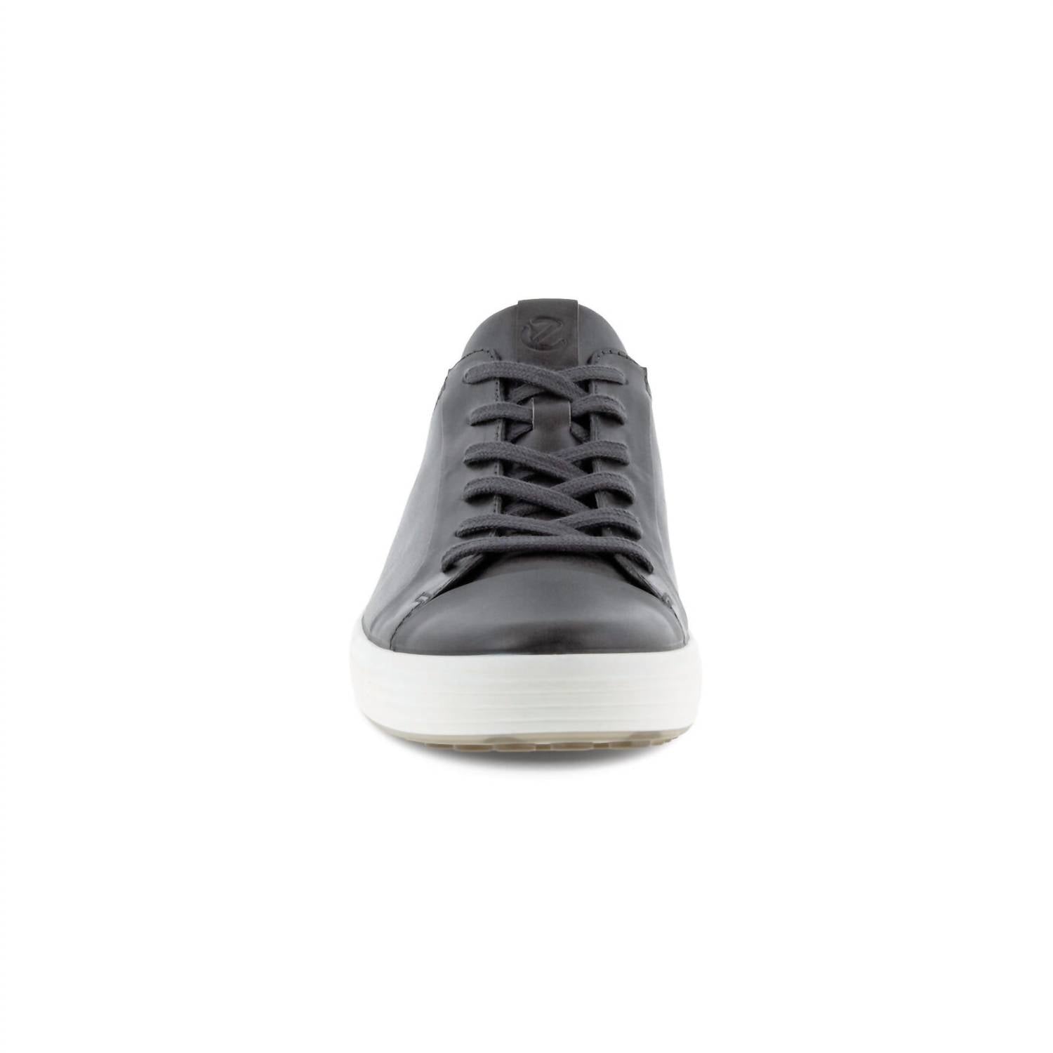 Experience the sleek style and versatility of the ECCO Men's Soft 7 Sneakers in Titanium Leather. Crafted from smooth, full-grain leather, these sneakers feature a tonal leather toe-cap and are partially lined in leather and textile for breathability. Designed with a lightweight, cushioning sole and removable leather-covered insole, they offer customizable comfort and extra width if needed. Closure is secured with tonal laces for a sleek, minimalist look, perfect for both smart and casual occasions like a dinner party.