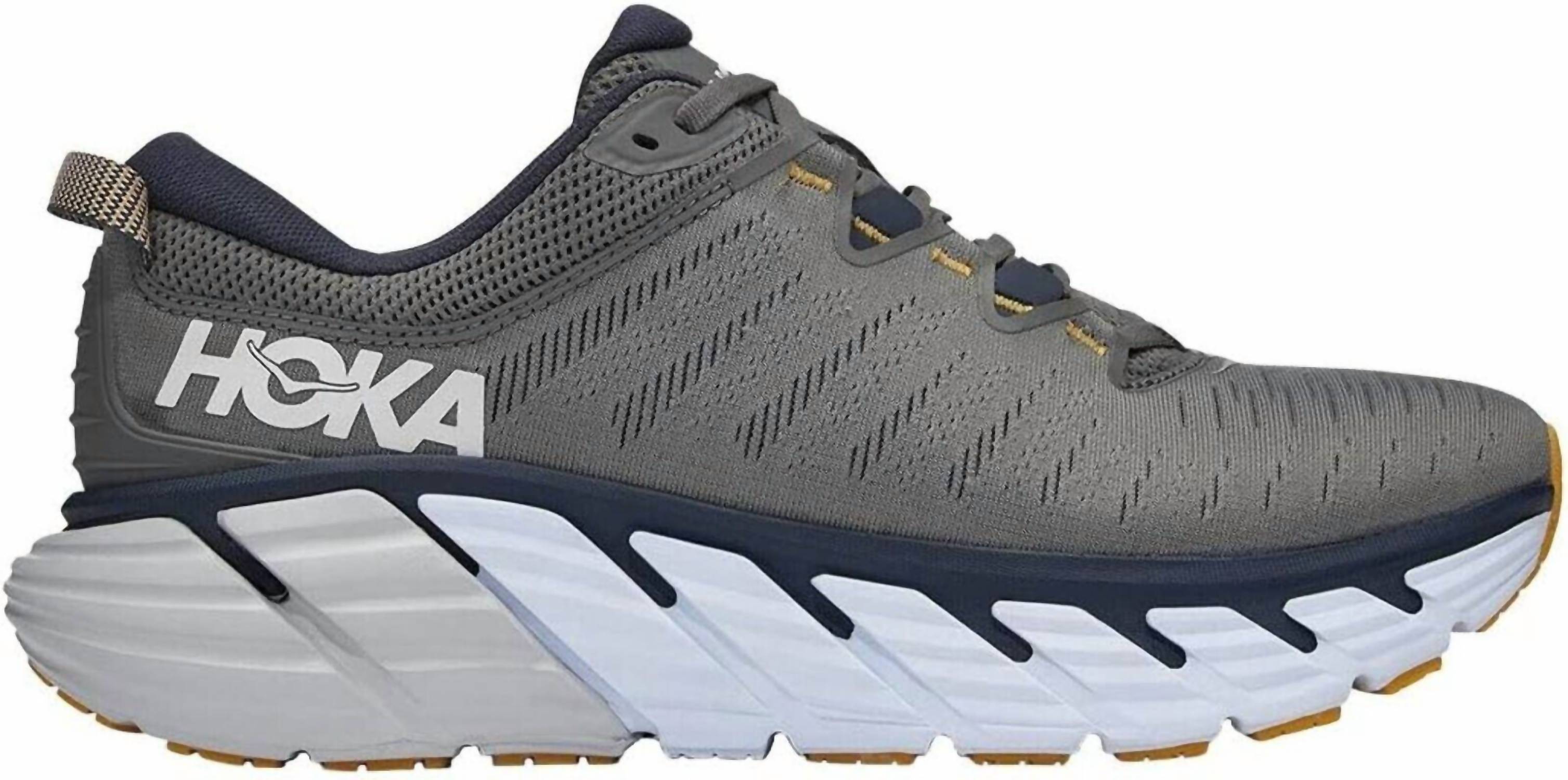 Discover the Men's Gaviota 3 Sneaker by Hoka, crafted for those who prioritize comfort and support during workouts or athleisure activities. Featuring breathable engineered mesh, this sneaker ensures comfort with its innovative J-Frame™ design to guide the foot naturally. It boasts a round toe shape and is available in an eye-catching Charcoal Gray/Ombre Blue color. Designed for stability with flat-waisted geometry and additional cushioning from a late stage Meta-Rocker, this shoe promises durability with its rubber outsole. Ideal for a balanced ride, it’s perfect for any fitness enthusiast.