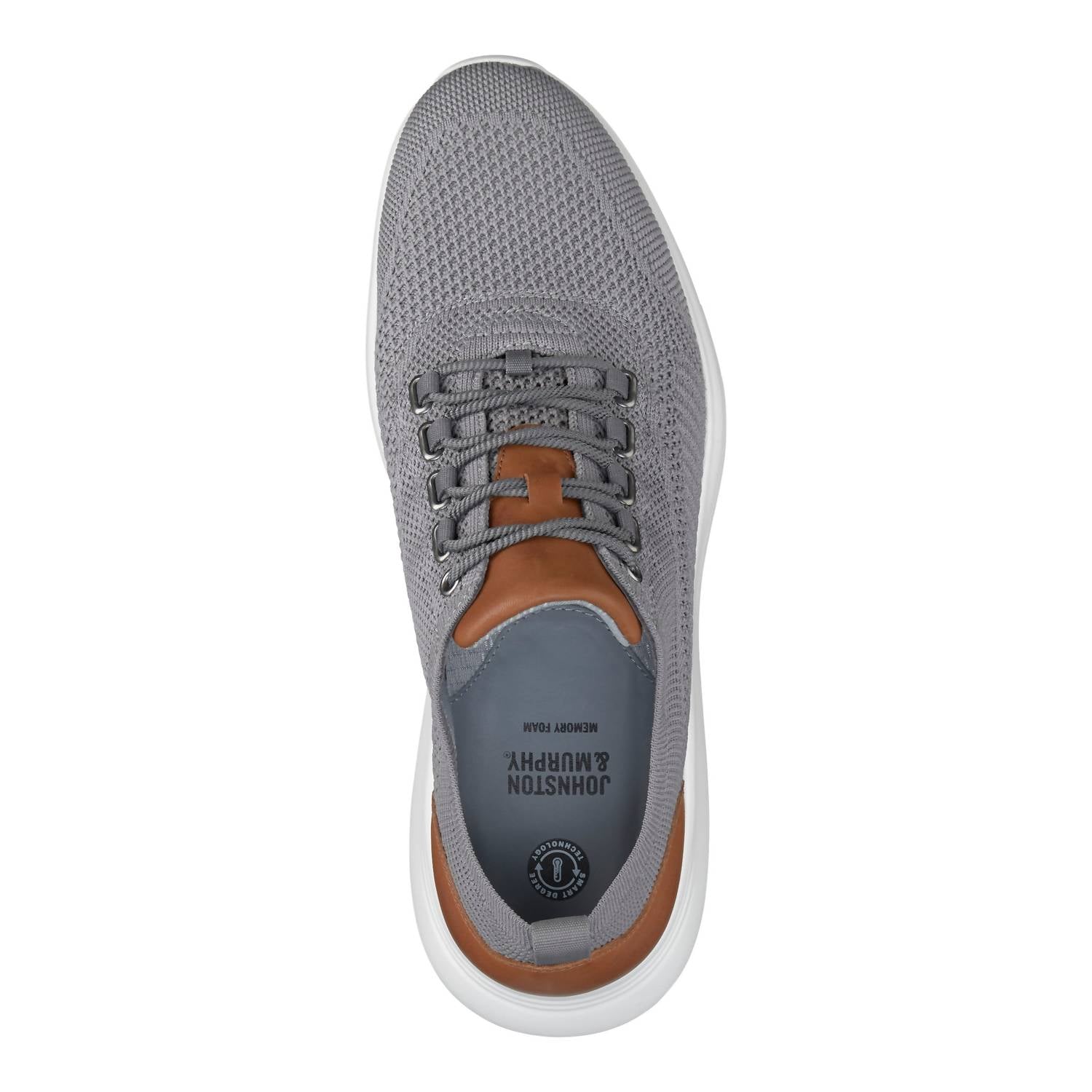 The Men's Amherst Knit U-Throat Casual Sneakers by Johnston & Murphy are the perfect blend of comfort and style for your travel needs. These sneakers feature a lightweight, cushioned design in breathable sport knit with full-grain leather trim. Enhanced with J&M Smart Degree Technology®, they adjust to temperature changes, ensuring all-day comfort. The extra-flexible grooved EVA sole and removable dual-density cushioned footbed provide exceptional support, all in a flat heel with round toe shape suitable for minimalist spring looks.
