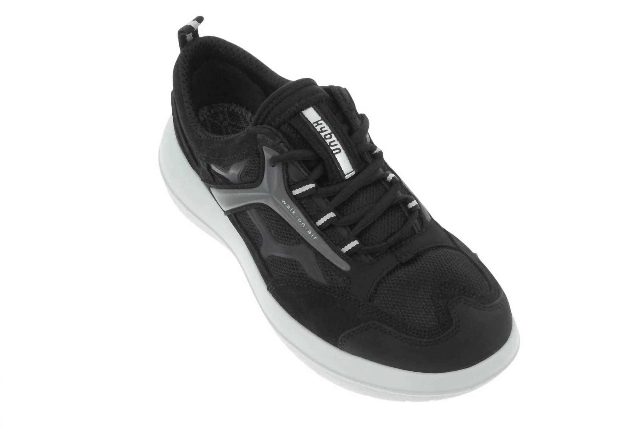 Experimente a combinação perfeita de estilo e funcionalidade com o Tênis Esportivo Masculino Sursee 20 da Kybun. Este tênis vem na moderna cor preta com solado branco e detalhes em cinza, perfeito para qualquer look esportivo. O material em mesh respirável garante um clima fresco para os pés, tornando-o ideal para treinos de primavera ou sessões de fitness. Com salto baixo anabela que varia de 3,8 cm a 5 cm e bico arredondado confortável, este tênis promete conforto e desempenho.