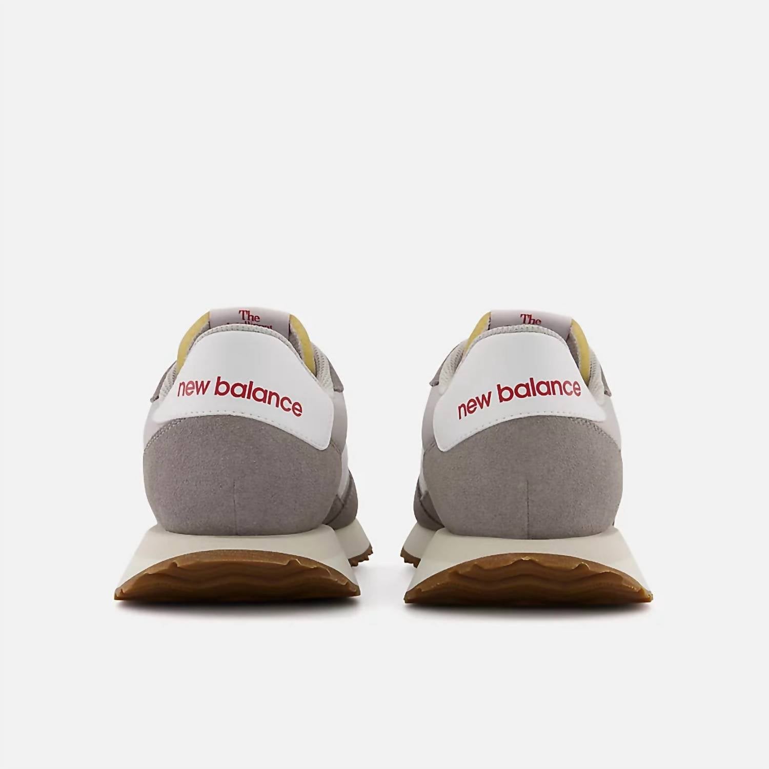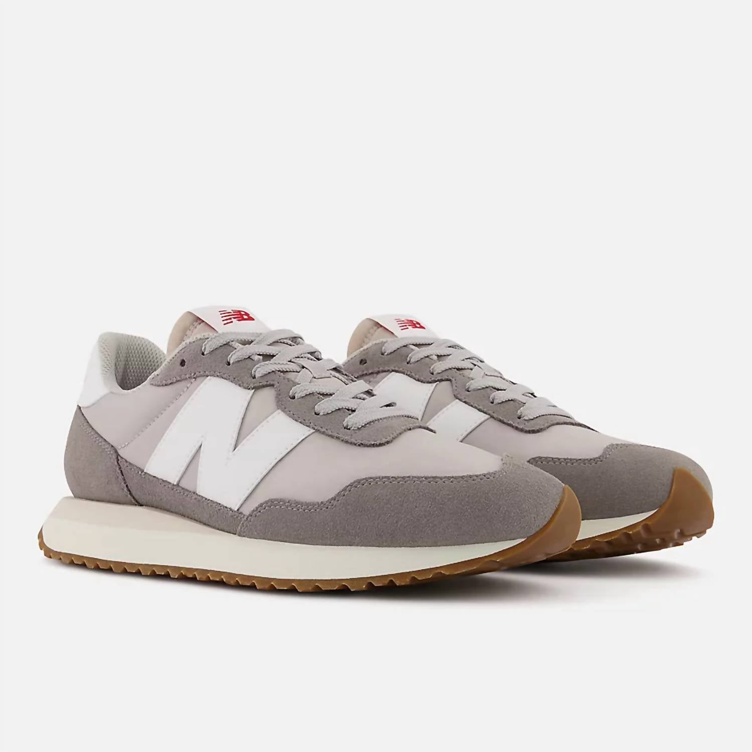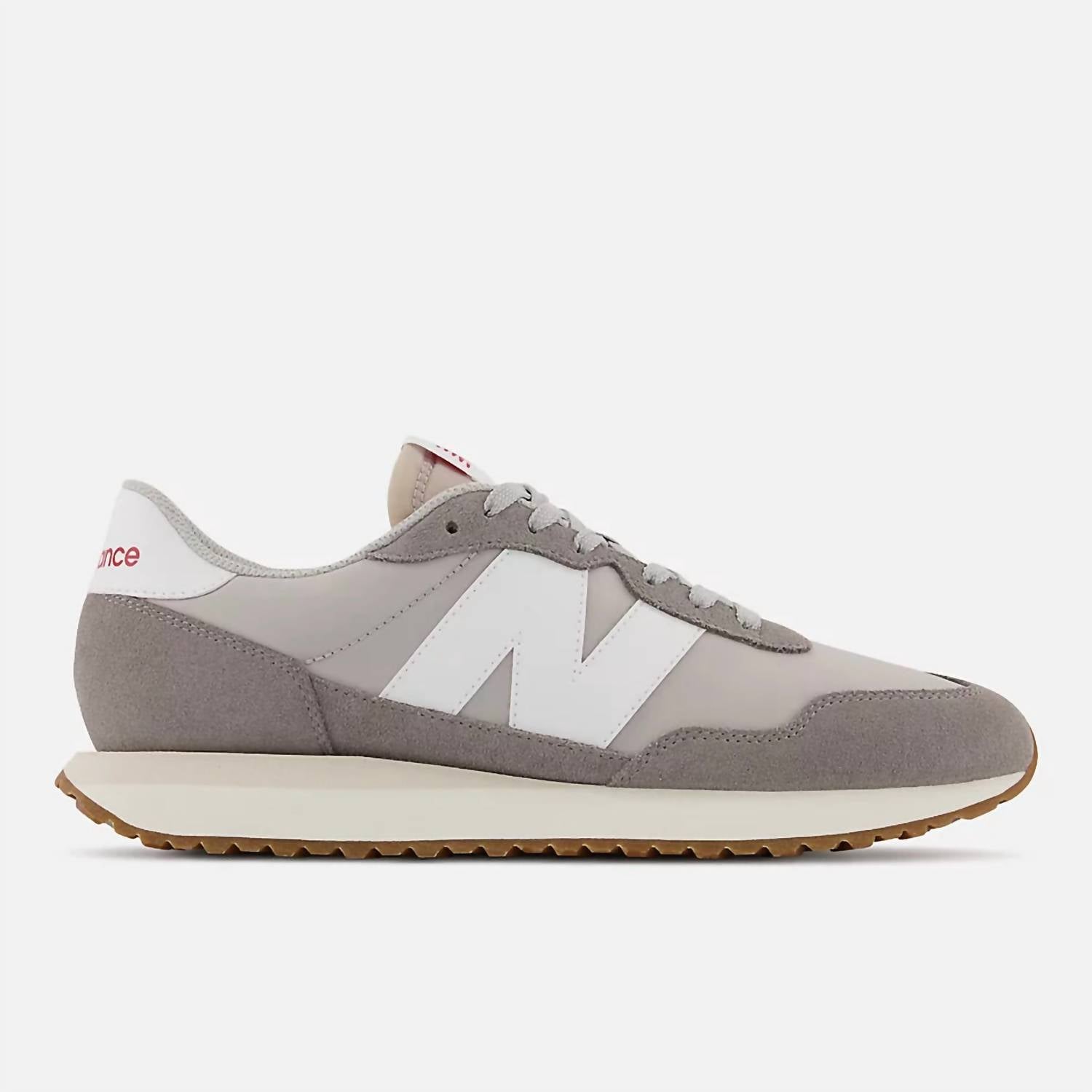 Step into comfort and style with the New Balance Men's MS237GE Sneakers in Marble Rain Cloud, perfect for your summer streetwear collection. Featuring an unbacked suede and mesh upper, these sneakers offer a lightweight feel with a distinctive oversized N logo for a bold statement. The EVA midsole ensures cushioning, while the large-scale ripple outsole and asymmetric rubber tip wrap add durability and traction. Displaying an exposed foam tongue and angled 'New Balance' text at the heel tab, these sneakers are ideal for holiday parties and urban adventures.