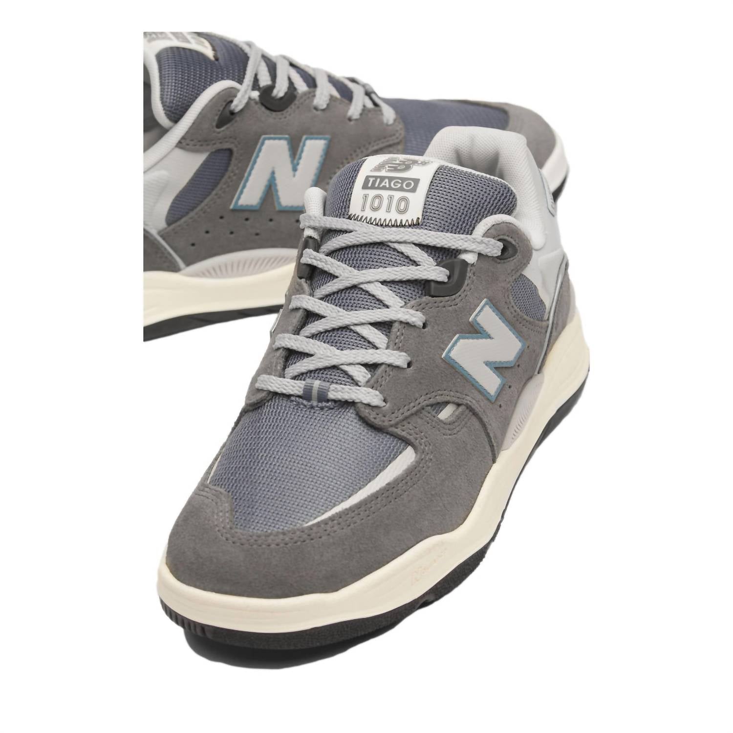 O Tênis New Balance Numeric Tiago 1010 na cor Cinza Aqua combina estilo e funcionalidade para um uso elegante e confortável. Construído com cabedal em camurça e mesh, ele conta com suporte ultraleve com FantomFit e entressola em espuma FuelCell macia para uma sensação de propulsão. O tênis possui sobreposições sem costura, solado em borracha para maior durabilidade, calcanhar anatômico e fechamento por cadarço seguro. Este modelo profissional Tiago Lemos é um complemento perfeito para sua coleção de calçados, projetado para homens e criado com o modelo #NM1010JP.