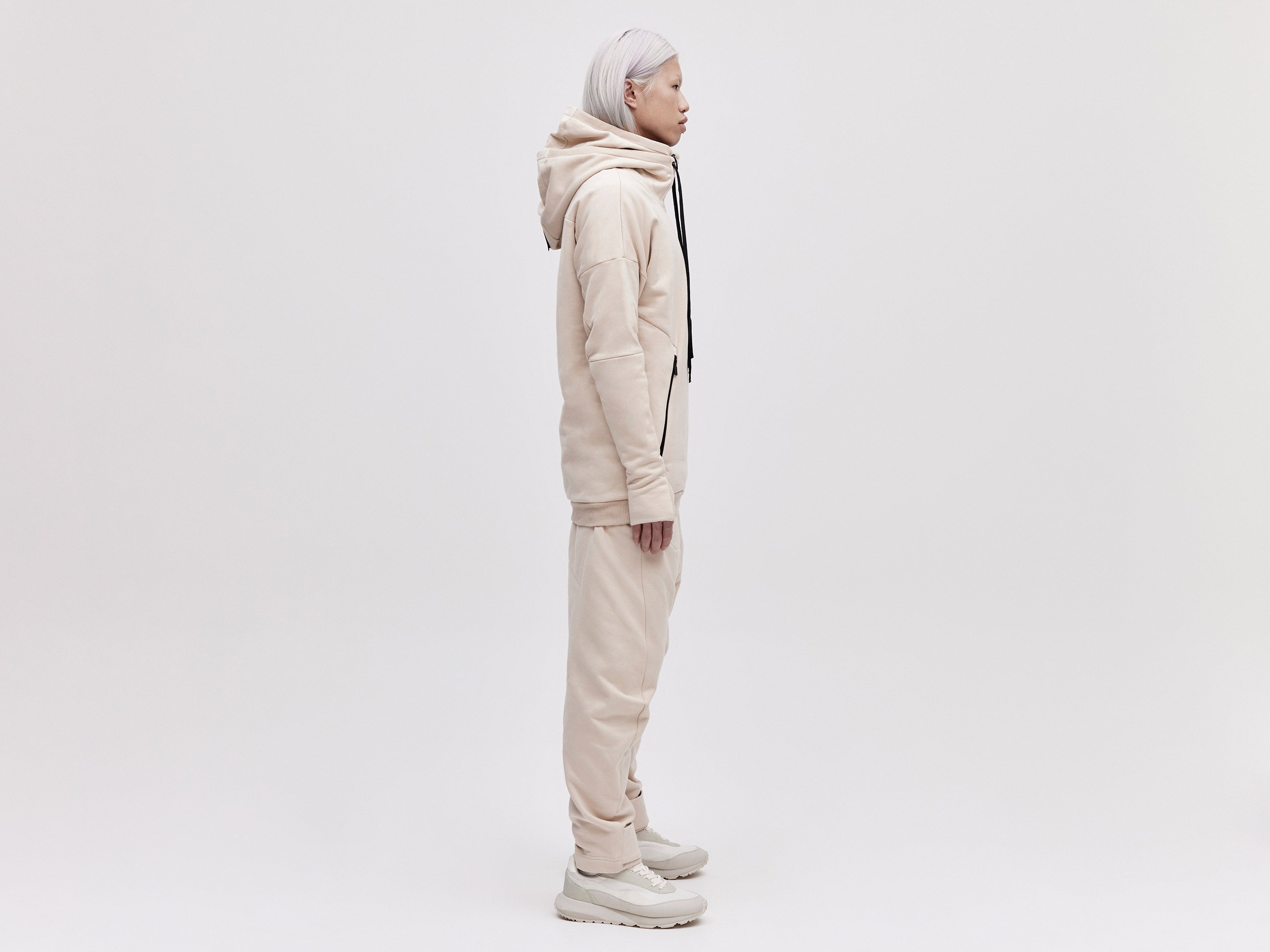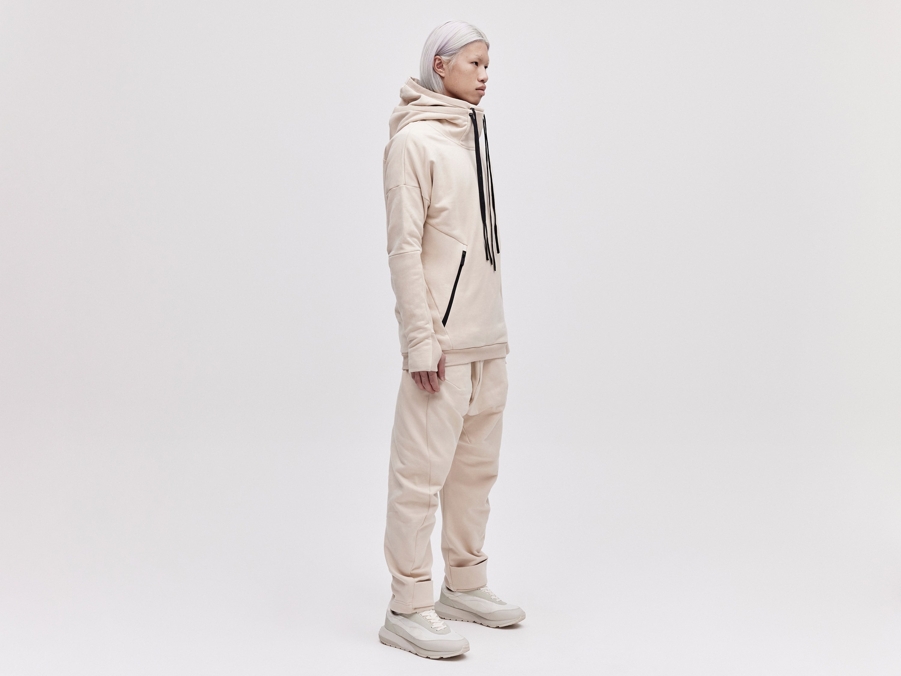 Our Double Hoodie features a slim fit for a narrow silhouette and is finished with zip front pockets and cuffs trimmed with ribbing for both comfort and longevity.